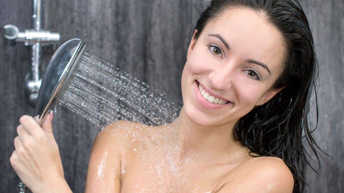 - направлять струи воды только на шею, чтобы не намочить лицо и брови;