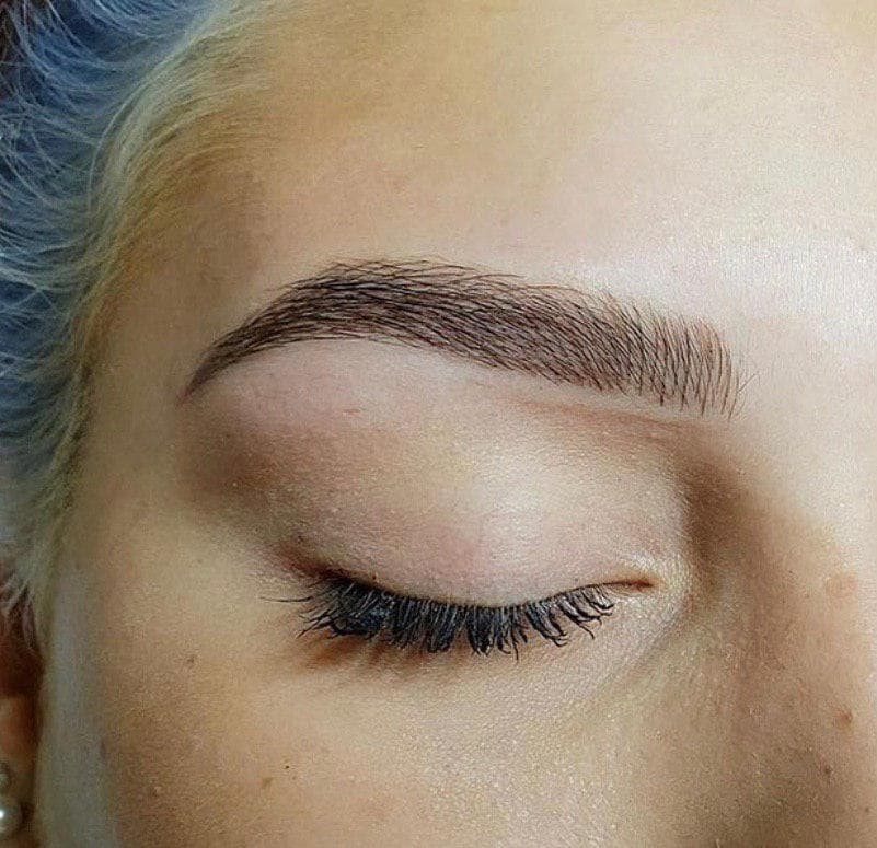 Когда корочки уходят многие начинают переживать, что под ними еле заметные полосочки и розовая кожа. Не нужно беспокоиться, потому что процесс регенерации кожи занимает 28 дней. Со временем пигмент проявится и станет более нежным, не таким ярким. После первого сеанса остаётся 50-60% цвета.