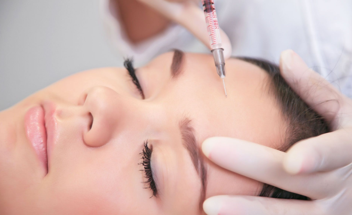 Шприц наполняется препаратом, а затем постепенно вводит его в необходимые зоны на лице девушки.
