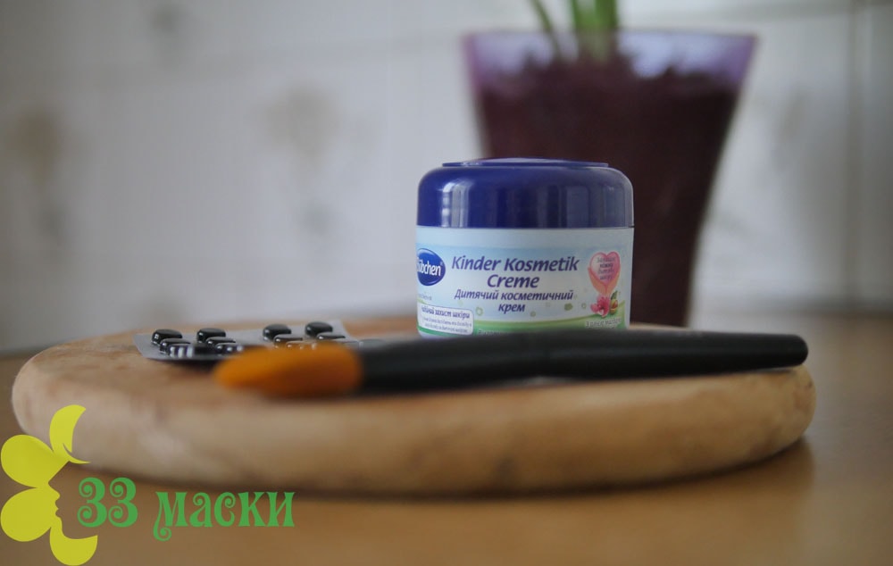 Затем умываетесь, смазываете кремом брови, полученным веществом покрываете все лицо довольно толстым слоем, включая губы, глаза, оставляя только нос, чтобы дышать.