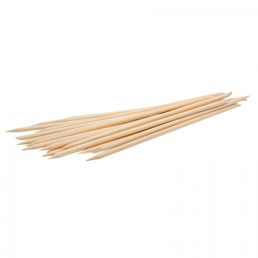 Деревянный двухсторонний предмет обладает разной длиной, выпускается в упаковке по 50, 100 штук. Для необрезного маникюра мастера используют короткий вариант длиной от 7 см до 10 см. Для снятия шеллака удобней работать длинным предметом в 10-15 см.