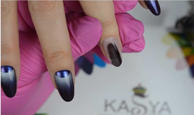 — делают при помощи липких полосок и (или) градиента, лучше всего выполнять на средних или длинных ноготках.