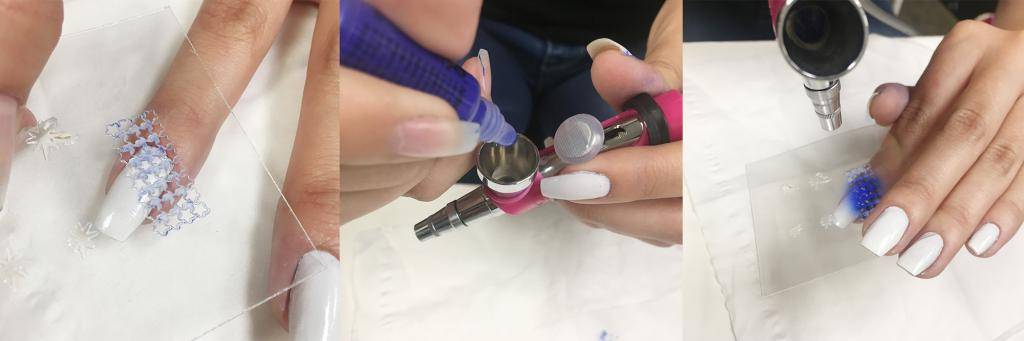 - перед началом каждого сеанса маникюра с аэрографией на ногтях стоит проверить, не осталась ли краска внутри устройства.