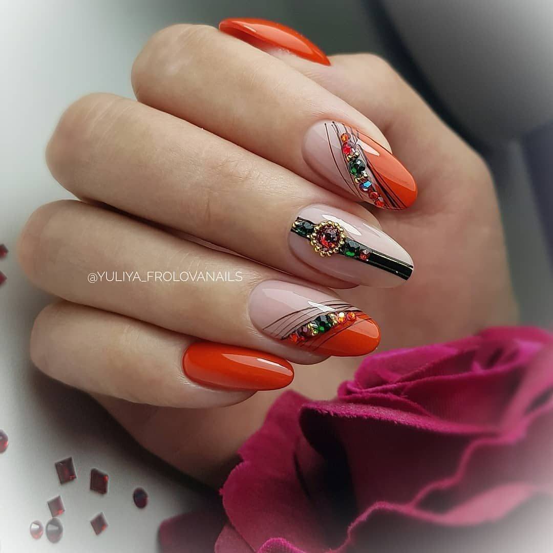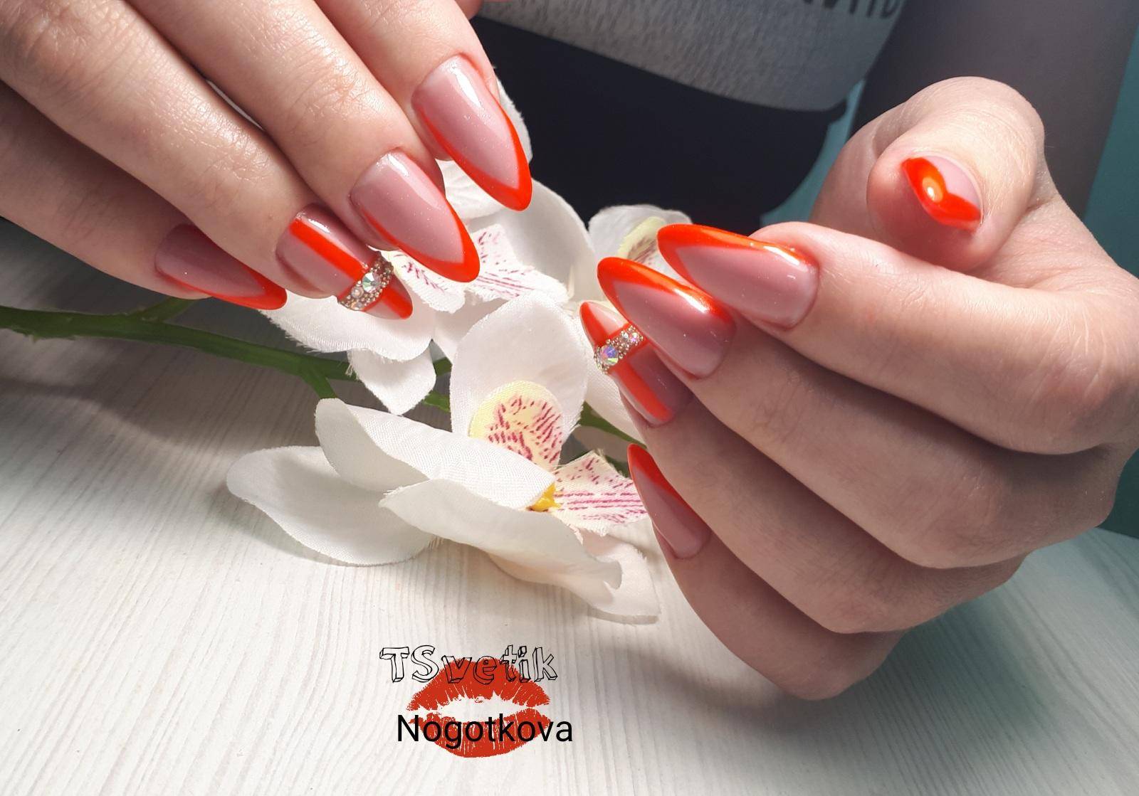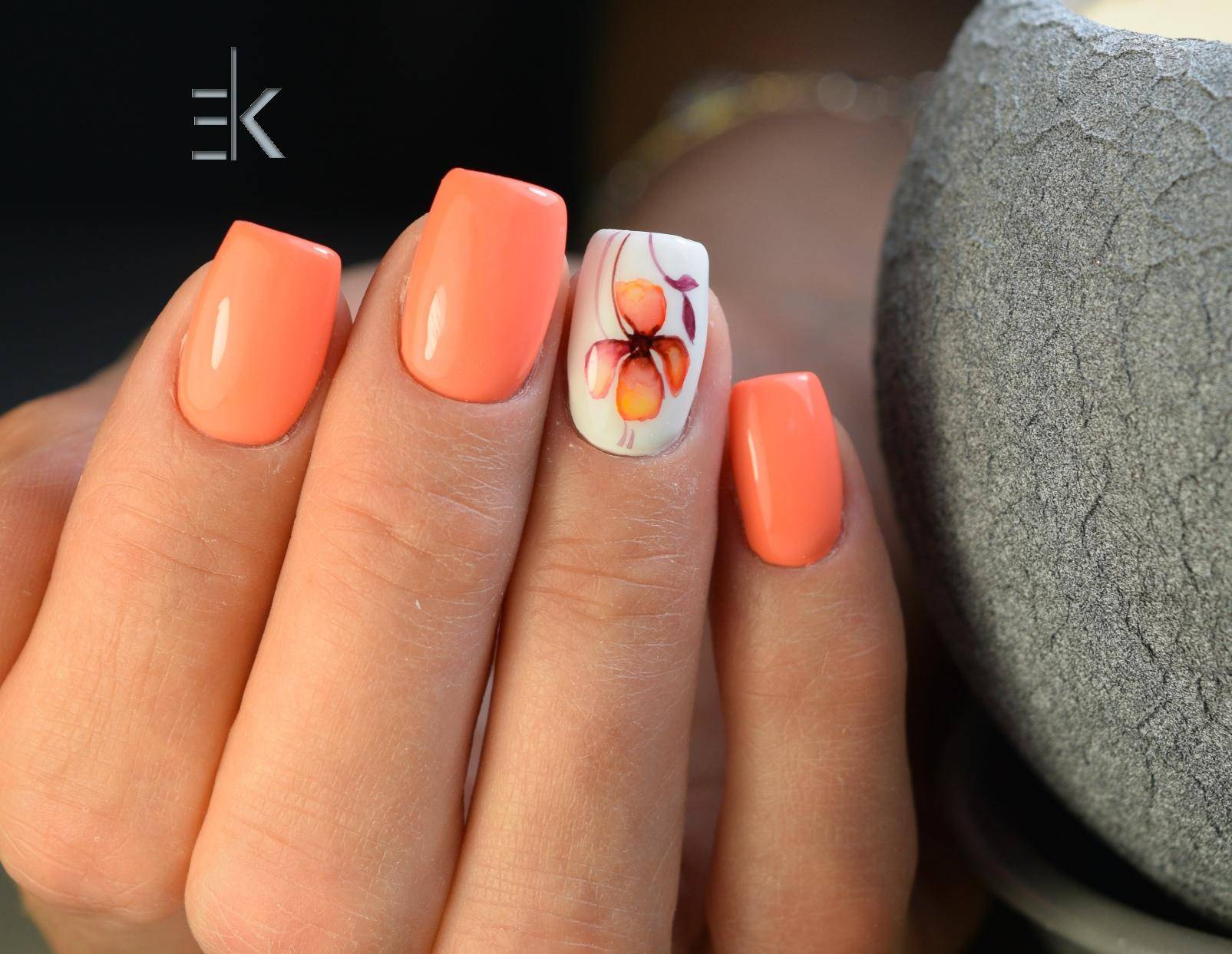 Лаки ярких цветов окрашивают ногтевую пластину, поэтому перед тем, как покрыть их цветом «Заводной апельсин», нанесите прозрачную базу. Иначе удовольствие от яркого маникюра продлится дня три, а яркий цвет впитается в ноготь надолго.