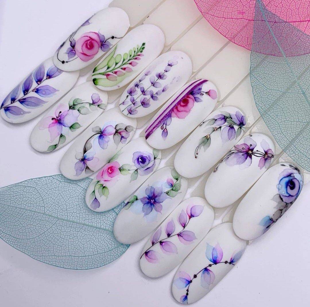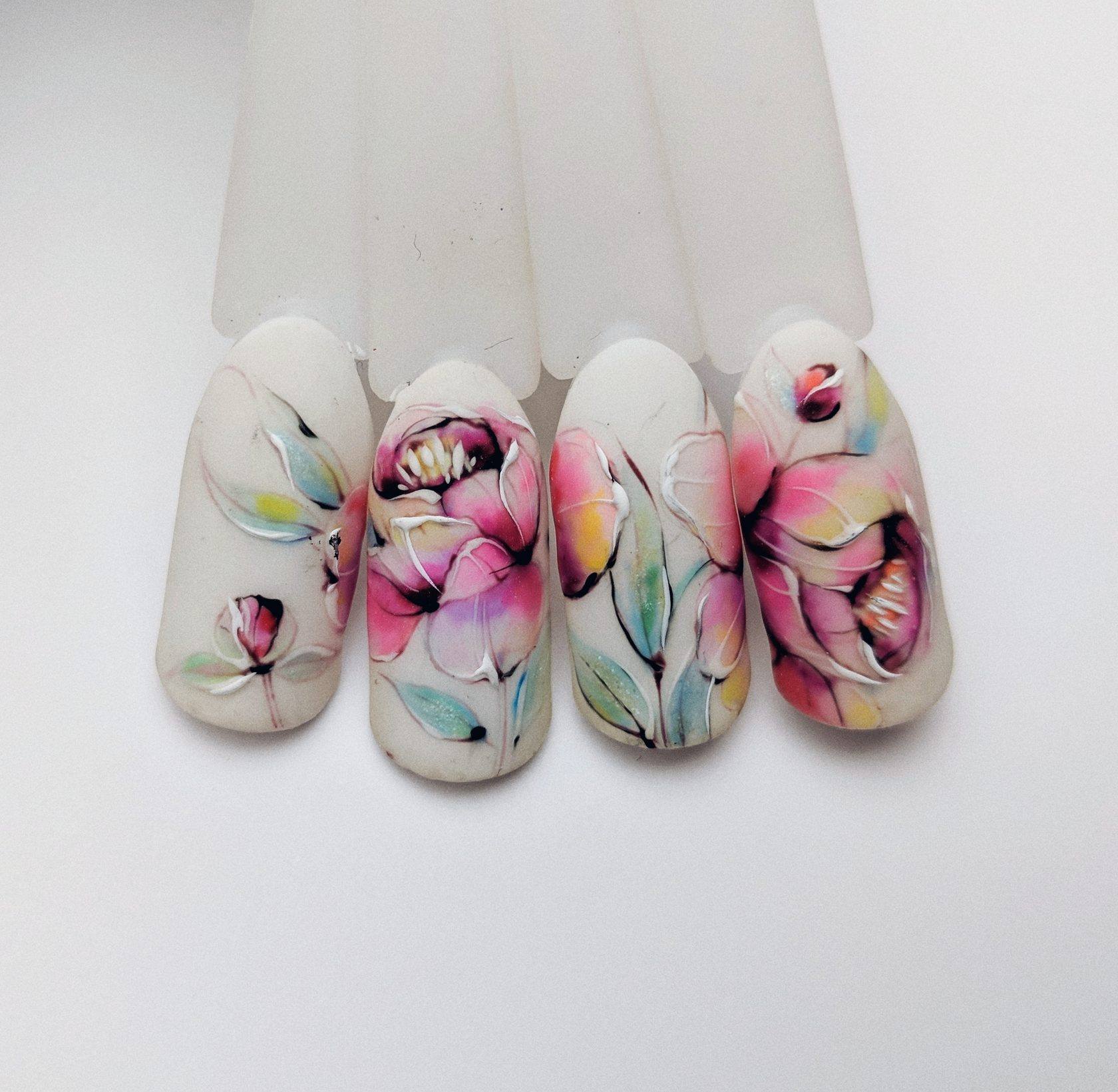 Акварельная роспись ногтей: нежный дизайн для нежных натур