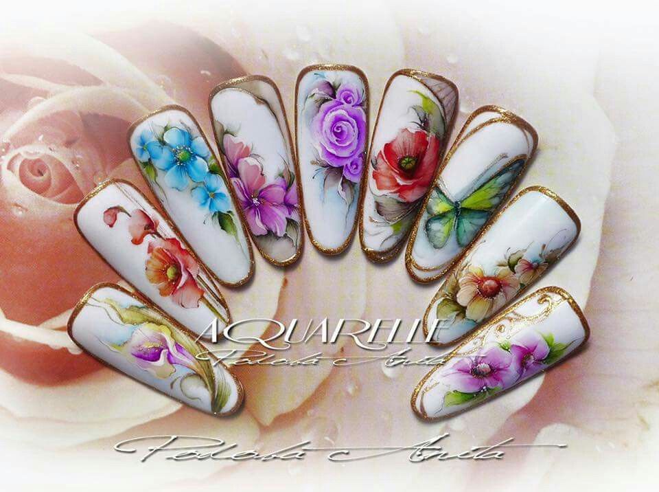 Акварельная роспись, в отличие от многих техник нейл-арта, требует от мастера художественных навыков, так как каждый элемент рисунка создается вручную с помощью кисти, но при этом дает практически неограниченные возможности для оригинального дизайна.
