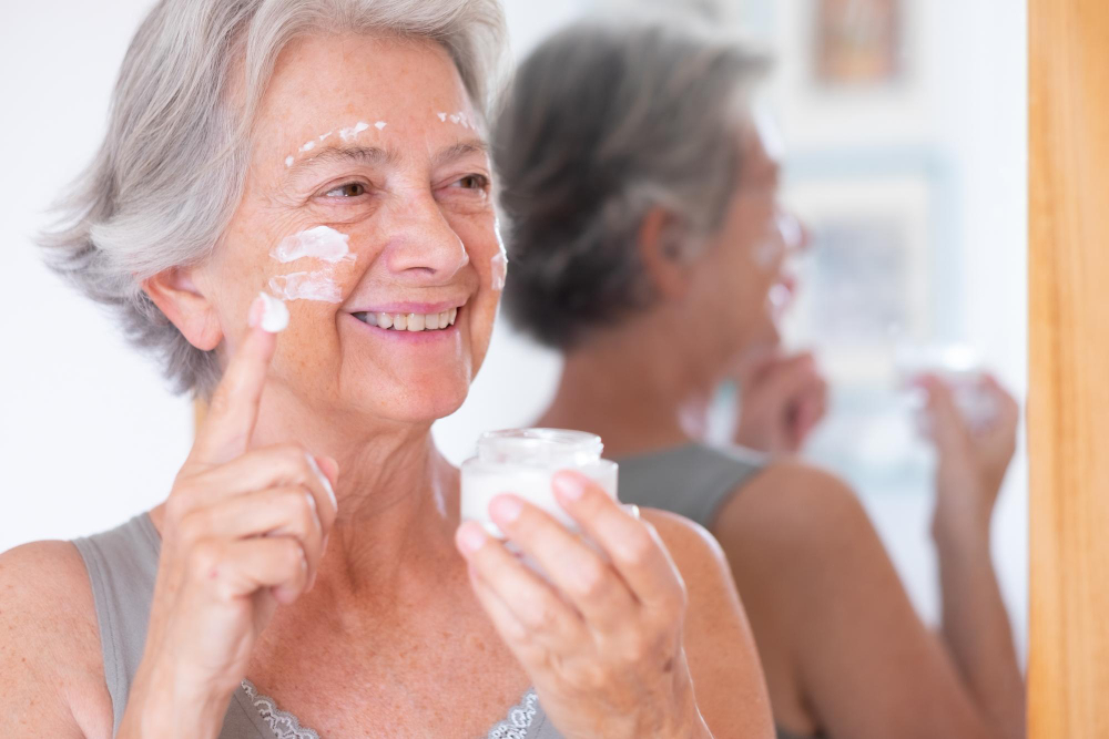 - После 50 лет старение ярко выражено. Помогают кремы с витаминами, пептидами и сильным увлажняющим эффектом.
