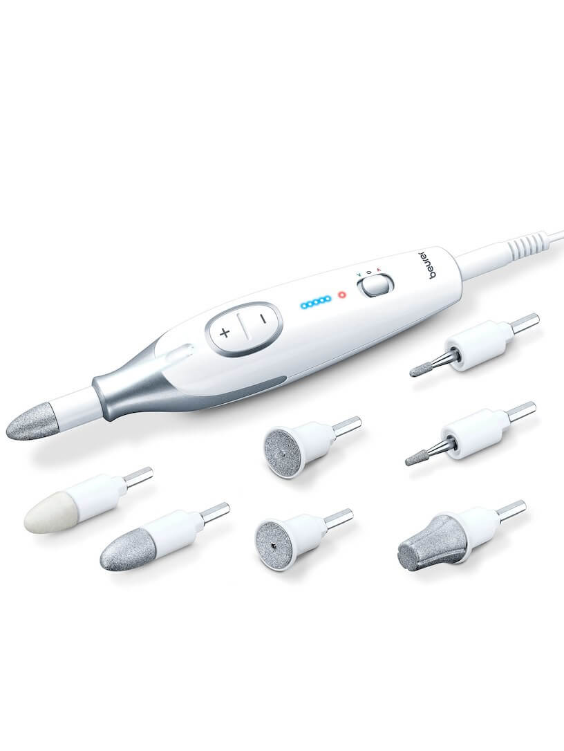 Beurer MP42 поставляется с 6 насадками из нержавеющей стали, с напылением из сверхпрочного сапфира и 1 войлочной насадкой.
