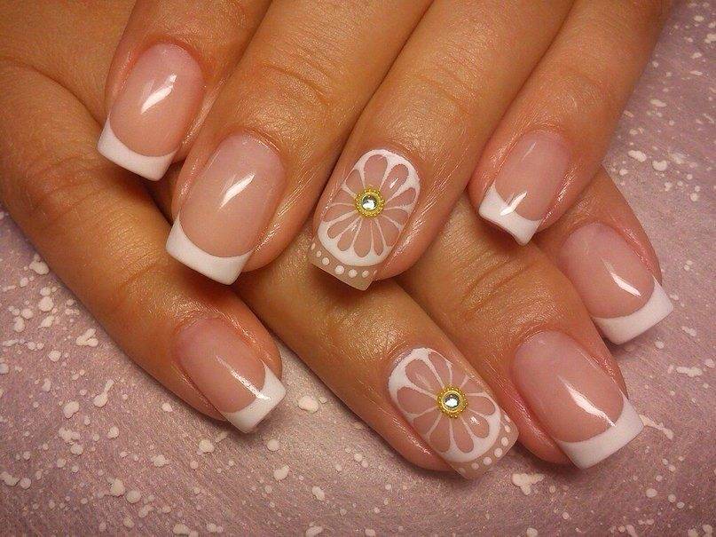 Оригинальные мотивы из декоративных элементов украшения на французском маникюре