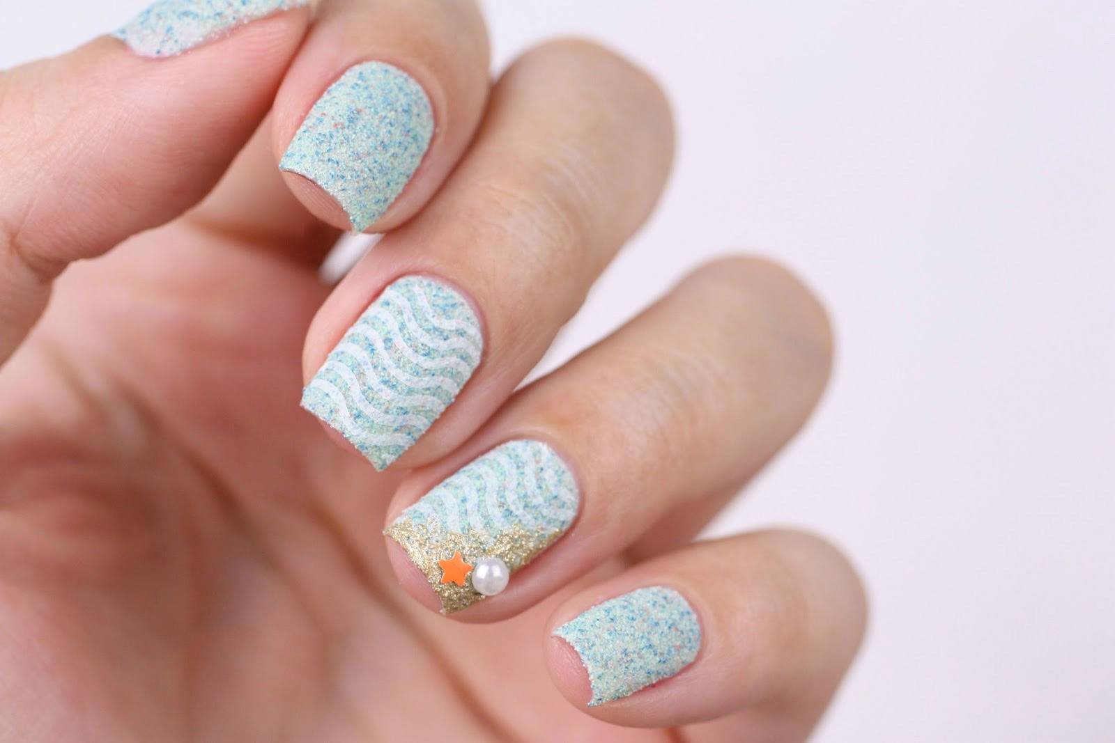 Первый вариант идеальный, если у вас нет лишних денег, и вы хотите подготовиться к вечеринке или празднику. Техника создания до безобразия простая. Просто сверху на мокрый цветной лак насыпьте песок и дождитесь его высыхания. Остатки сметают кистью.