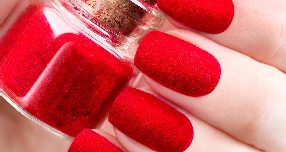 Умелые мастера маникюра успешно применяют технику нанесения флока на ногти.