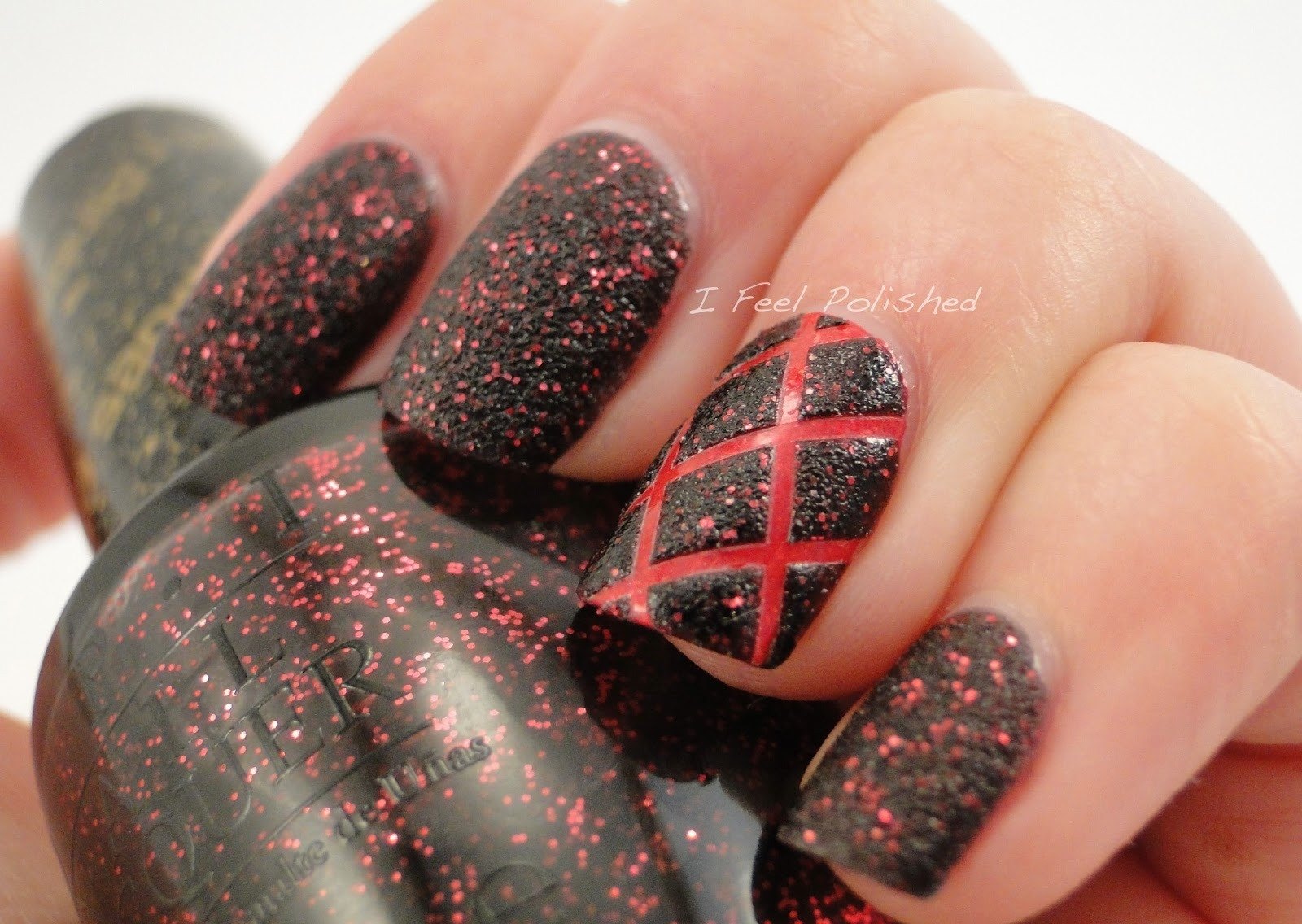 Смешной маникюр с немного “наркоманским” рисунком на ворсистых красных ногтях.