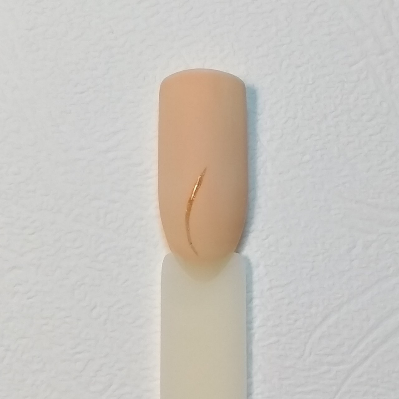 Шаг 2 – Присыпку бархатным песком можно делать на шеллаке, гель-лаке, гель-краске, геле. При создании рисунков удобнее работать с густой гель-краской. Для нашего дизайна возьмем золотую гель-краску с мелким шиммером и кисть с тонким волоском средней длины.
