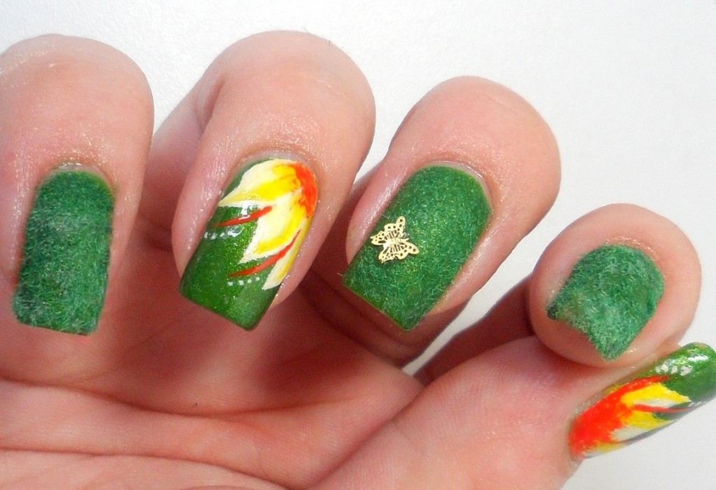 Маникюр бархатный песок — дизайн ногтей, при котором используется специальная пудра. Эта пудра насыпается поверх готового рисунка, позволяя создать неповторимую текстуру. Частички пудры бывают разными по размеру, поэтому использование пудры крупной, средней и мелкой фракции дает совершенно разный результат.