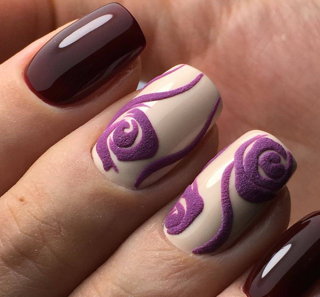Идей для реализации маникюра с бархатным рисунком очень много.