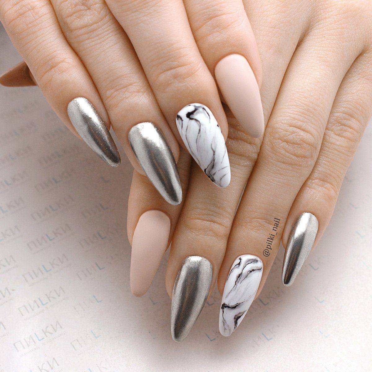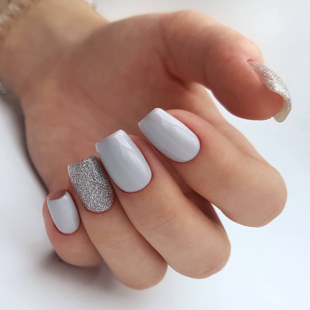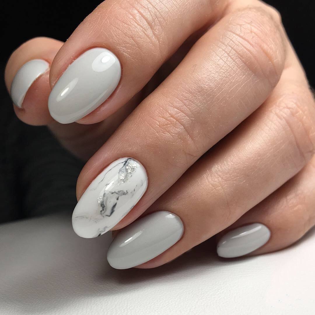 Если хочешь создать максимально элегантный и “дорогой” образ — выбирай маникюр с белым и серым лаками. Этот тандем ассоциируется со спокойствием, уверенностью, роскошью. Подумай о том, как одеваются по-настоящему успешные люди, вроде Билла Гейтса или Марка Цукерберга — в их гардеробе явно много белых и серых вещей. Вдохновившись эстетикой Кремниевой долины, ты можешь сделать как лаконичный, так и оригинальный серо-белый маникюр.