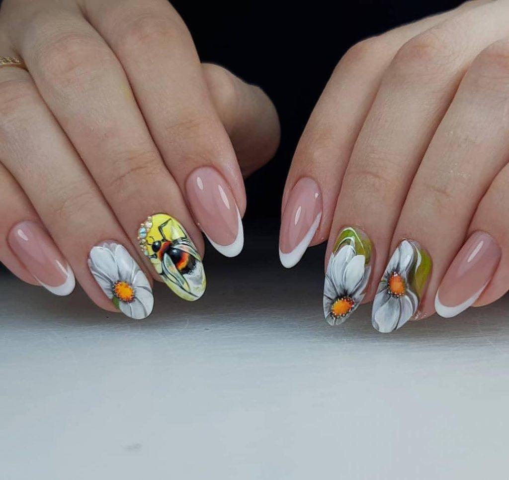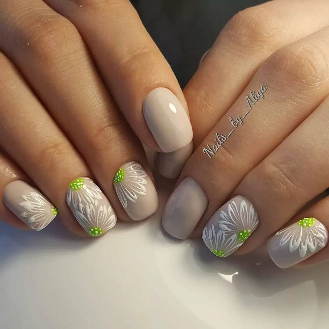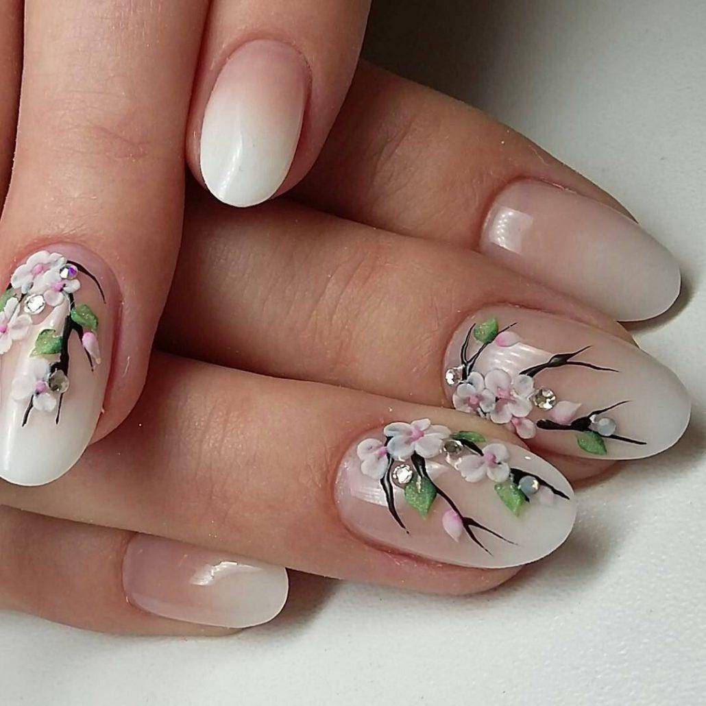 #1 Маникюр с белыми цветами с помощью ручной росписи