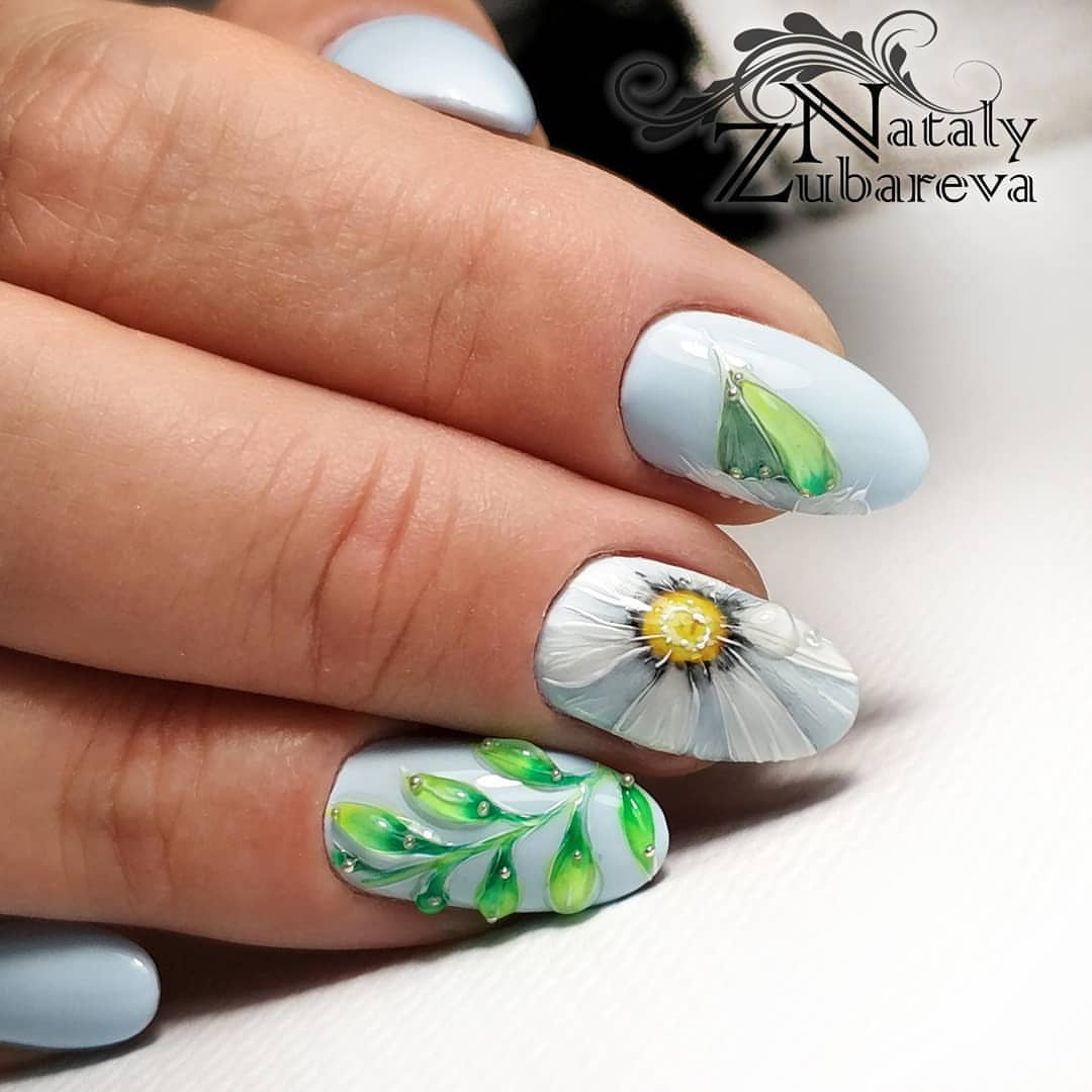 К весне отлично подойдёт тема цветов, рисунки веточек. Летом на ногтях молодых девушек нередко изображены милые животные и сердца.