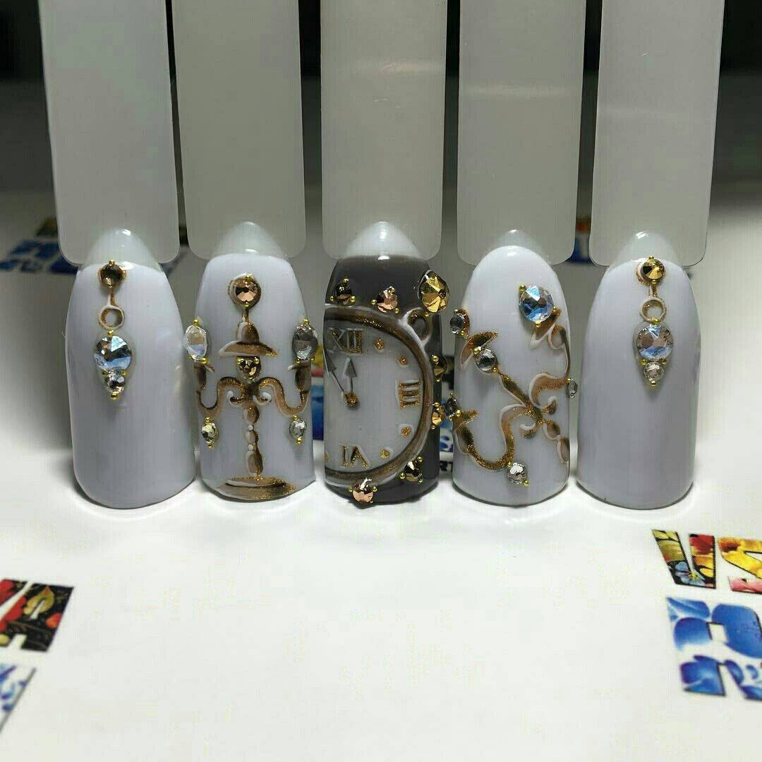 Маникюр с лепниной утратил свою былую популярность, однако не перестает при этом выглядеть потрясающе и красиво. Лепнина выглядит на ногтях очень оригинально и заметно, такой дизайн чаще всего выполняется для торжественного случая: свадьбы, вечеринки или других событий.
