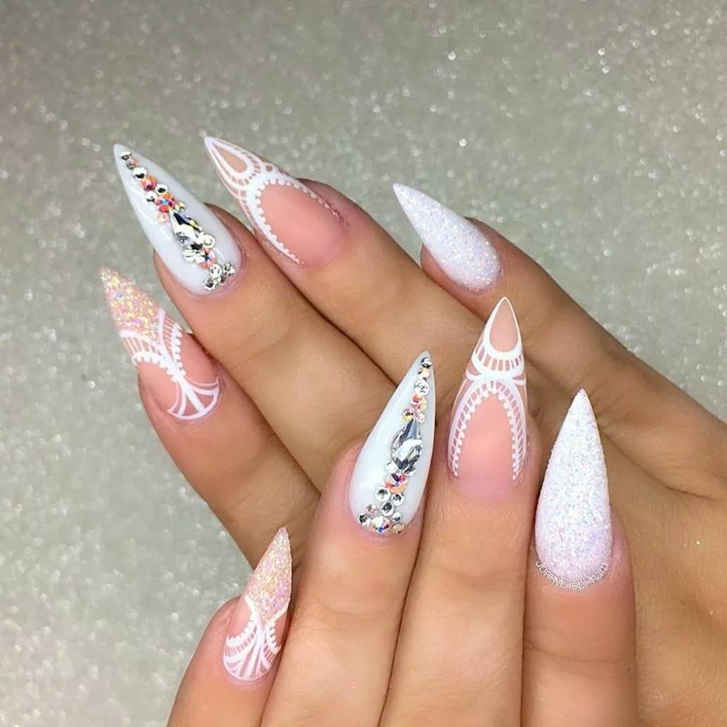 - Нейл-арт со стразами, используемый для создания утончённого праздничного образа или свадебной церемонии.