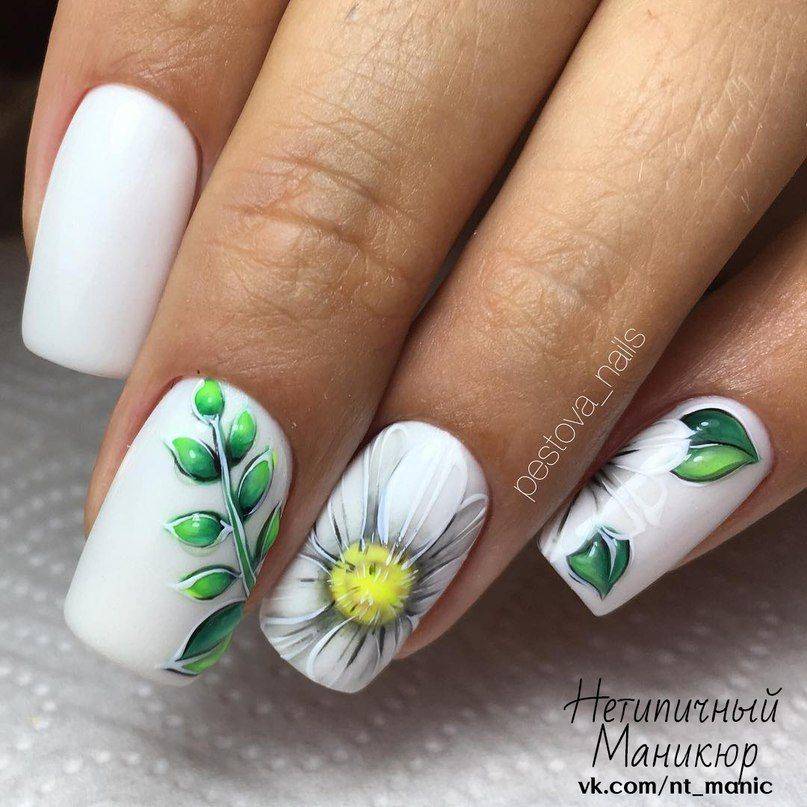 Белые цветы на ногтях выглядят очень благородно и элегантно. Если вы хотите, чтобы маникюр гармонично вписывался в ваш образ, то дополните его белой флористикой. Разнообразие цветов по-настоящему огромно. Это могут быть розы, мелкие полевые цветы, нежные орхидеи, тюльпаны, ромашки и т.д.