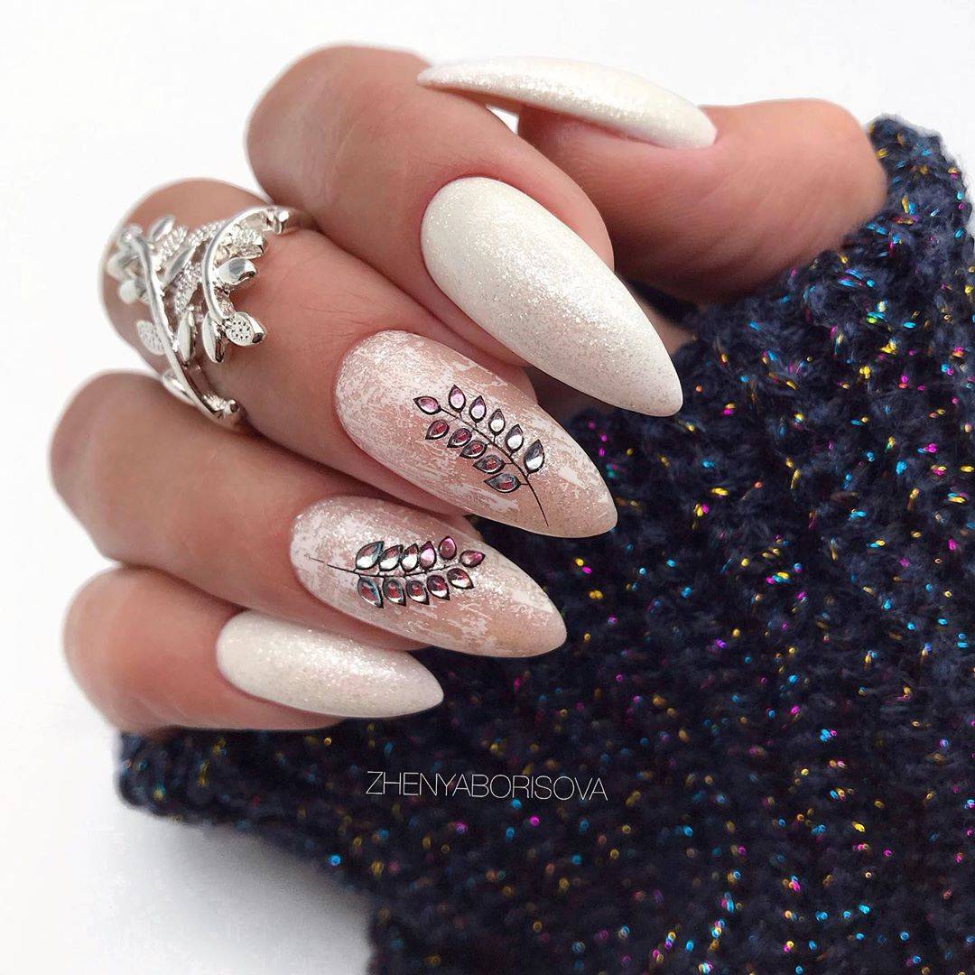 Любой самый необычный и креативный дизайн можно воплотить на прекрасной модной, стильной и трендовой форме ногтей, как миндаль. Миндальный маникюр со стразами – выбор красивых и элегантных девушек и женщин с отличным чувством вкуса.