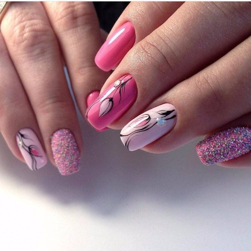 Нежные оттенки сиреневого (лилового) оптимально сочетаются к близким к ним тонам розового. Соответственно насыщенные цвета хорошо сочетаются с такими же яркими вариантами или темными оттенками. Объединятся сиреневый с розовым может в разных техниках маникюра, дополнятся декором аналогичных цветов или яркими элементами под золото, серебро и т.д.