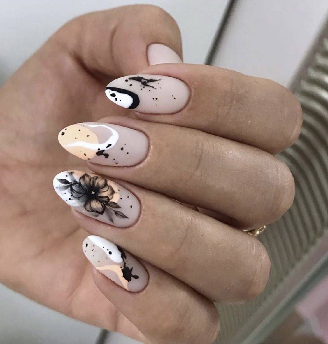 Обворожительный матовый маникюр в чёрно-белом исполнении
