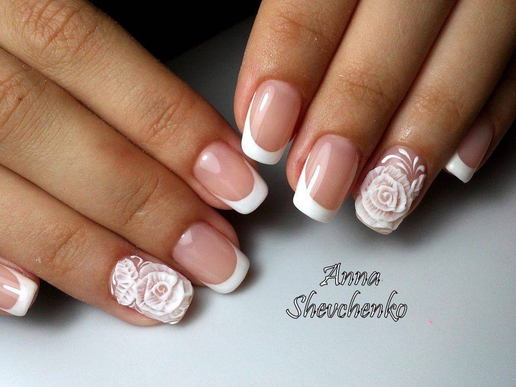Чтобы создать великолепный дизайн с лепниной совсем не обязательно выполнять сложный и слишком объемный декор. Достаточно разместить на ногтях несколько аккуратных цветов или бутонов, которые будут лишь дополнять основной дизайн. На фото вы можете видеть несколько идей маникюра с лепниной. Именно так должен выглядеть дизайн, чтобы он гарантированно вписался в ваш торжественный и возможно повседневный образ.