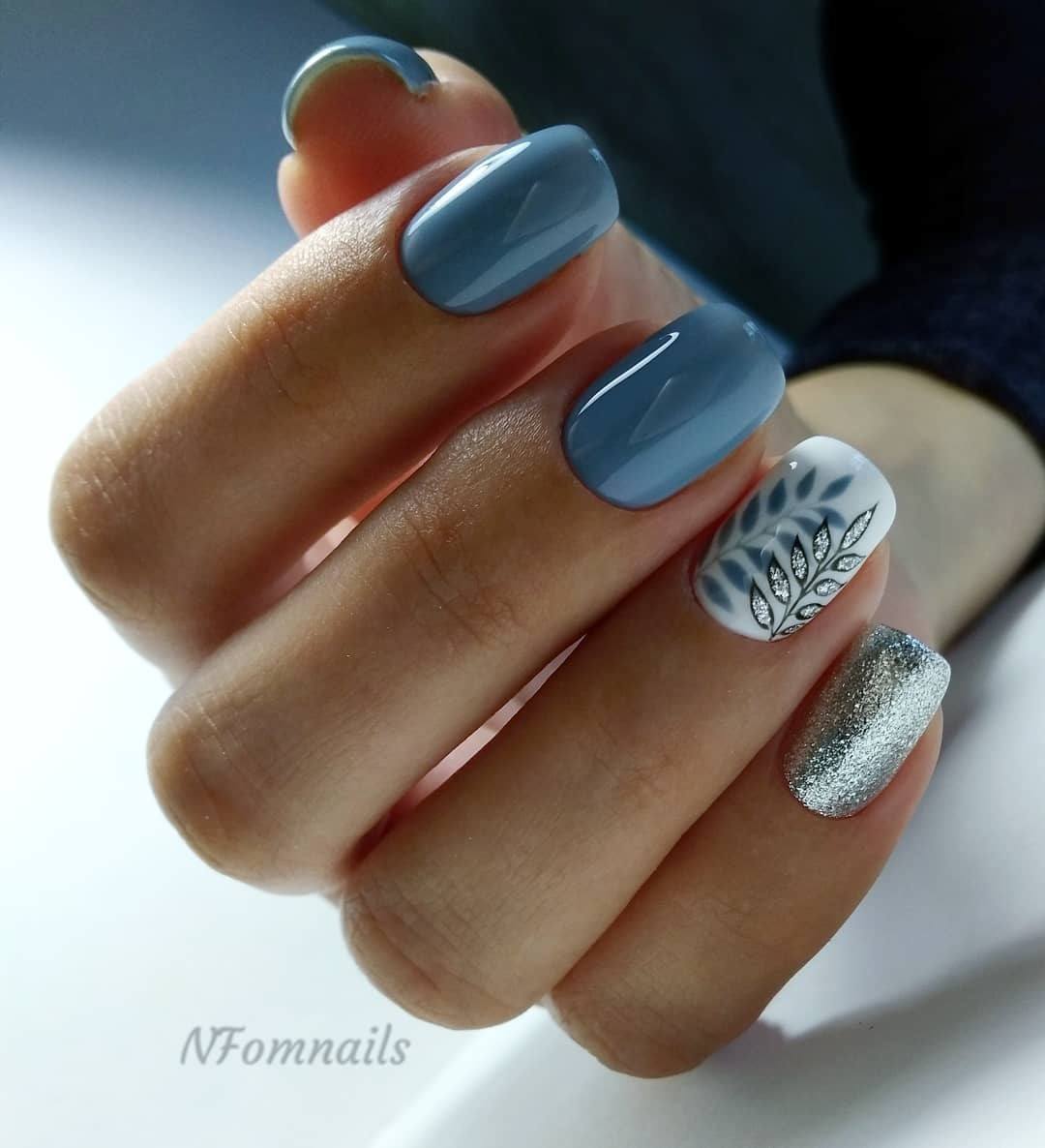 В первую очередь, на что мы хотели бы обратить внимание, это тот факт, что в качестве основы в таком маникюре может использоваться любой оттенок палитры, начиная от тёмного, и заканчивая самым светлым. Это может быть графитовый или гранитный серый, цвет мокрого асфальта, стальной, муссон, французский серый, пепельный, дымчатый, светло-серый и многие другие тона с не менее оригинальными названиями