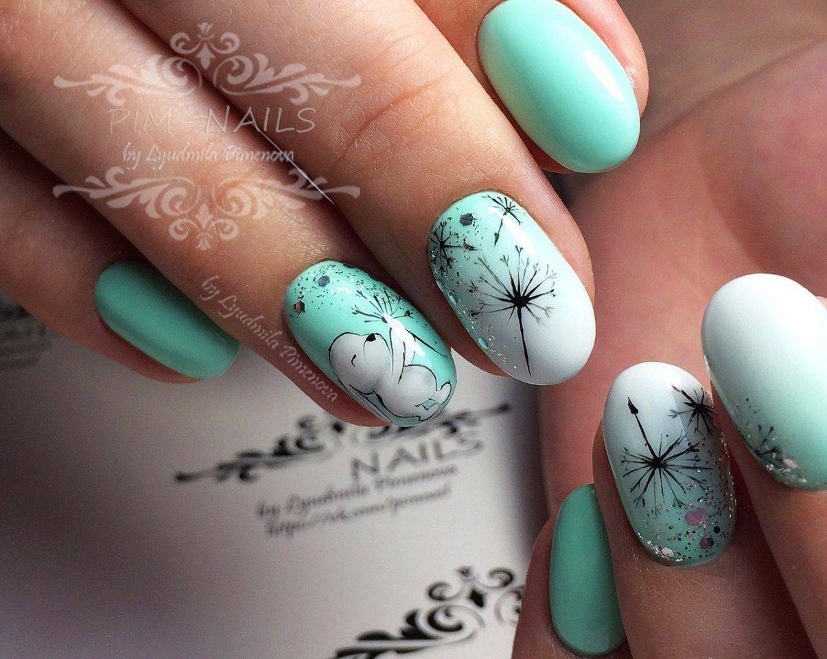 Завораживающая бирюза вместе с сиреневым лаком смотрится очень гармонично и при этом романтично. Модный тандем этих оттенков можно использовать для весеннего, летнего маникюра, декорировать, делать комбинации из матового и глянцевого покрытия. Делая нейл-арт с бирюзовым и лиловым оттенком, стоит учитывать соотношение тона. К примеру, не стоит делать дизайн с ярким сиреневым оттенком и нежным пастельным бирюзовым, а лучше подобрать более насыщенный вариант бирюзы.
