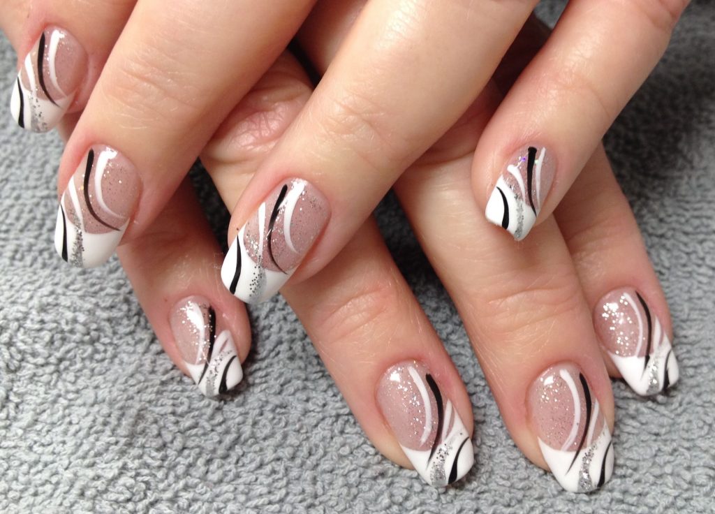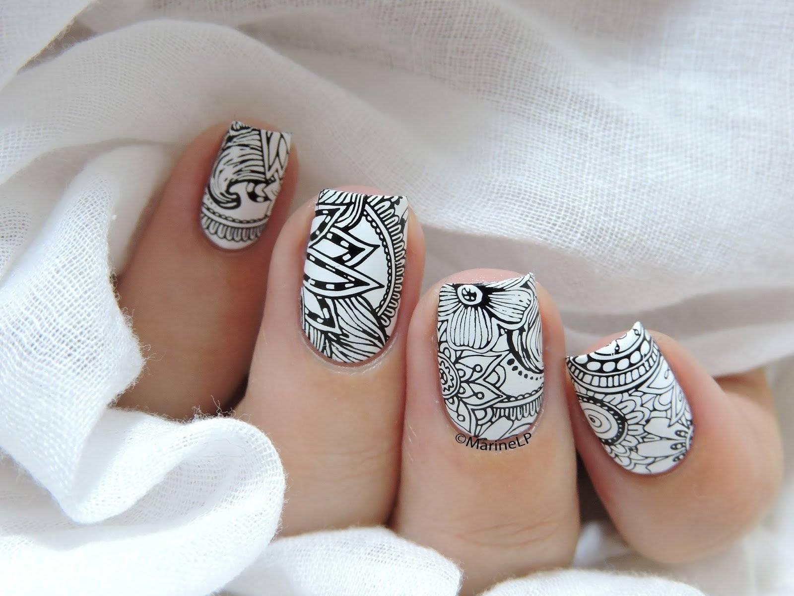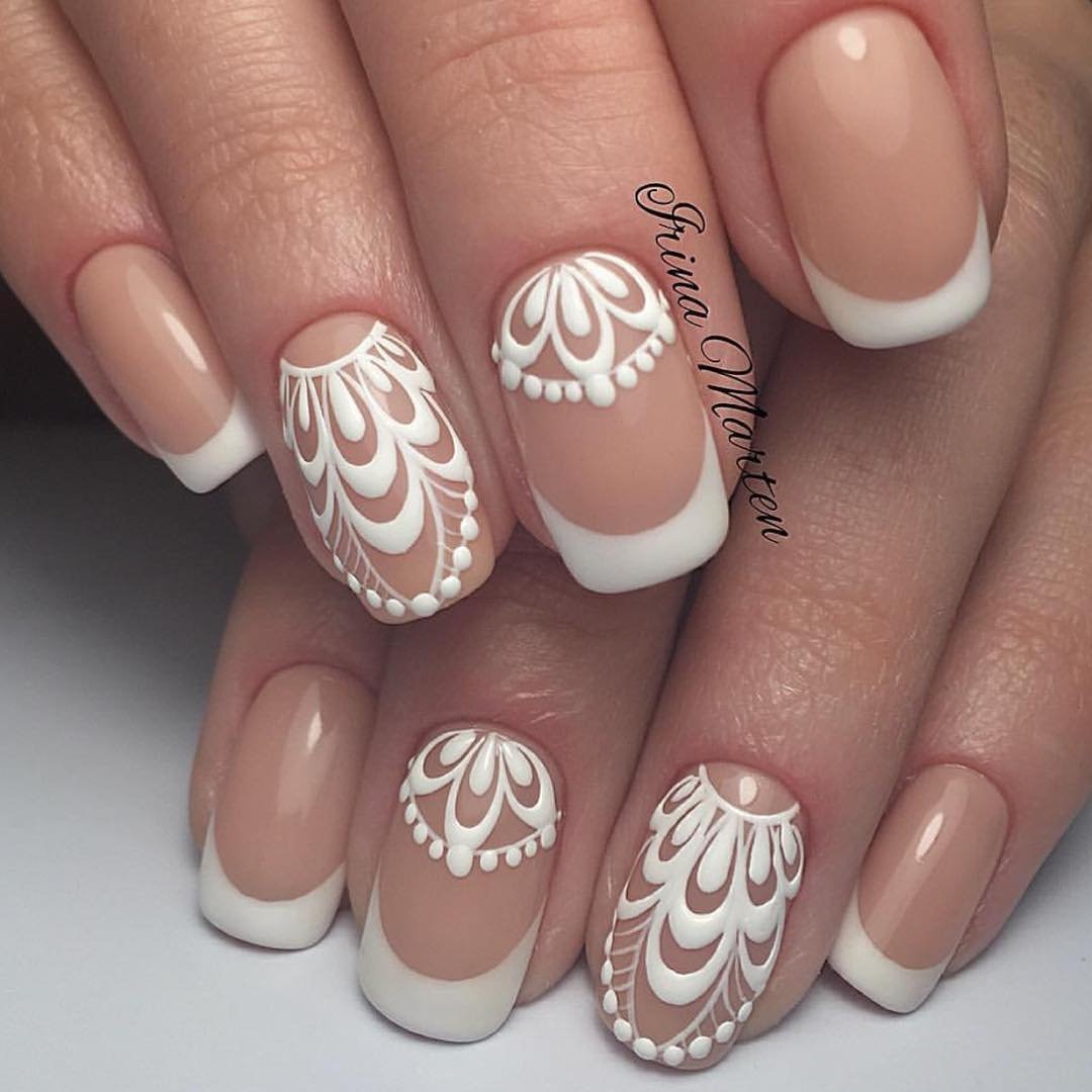 Контрастные узоры на белоснежном фоне станут оригинальным вариантом, который подчеркнет утонченность и чувство стиля. Все что нужно, так это аккуратно изобразить тонкие линии, вплетающиеся в нежные узоры: в геометрию, ломаные линии, растительные и другие мотивы.