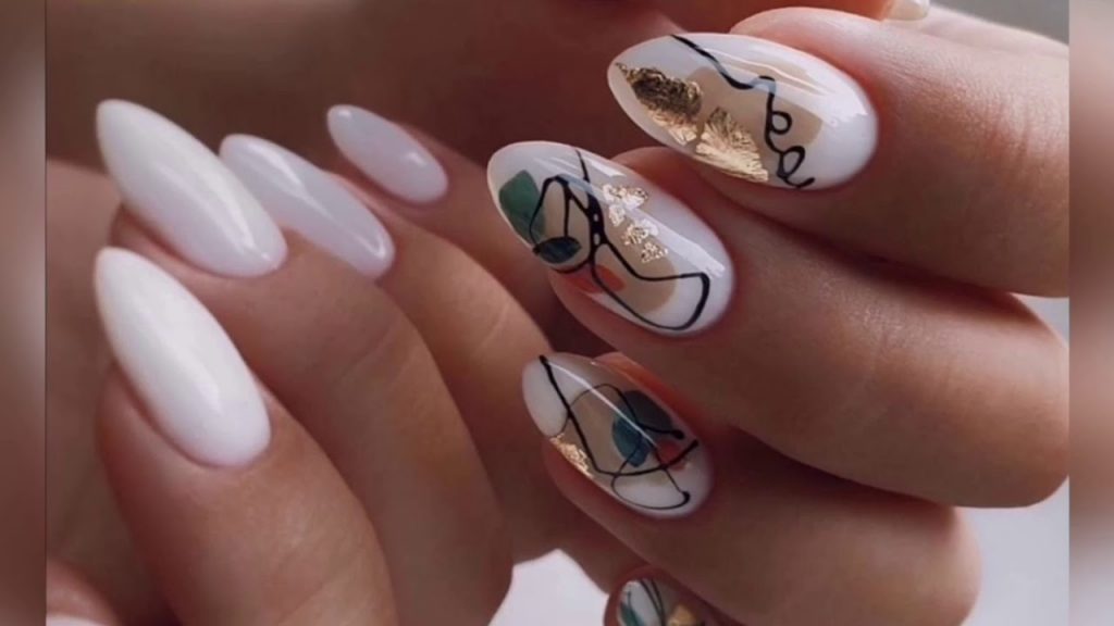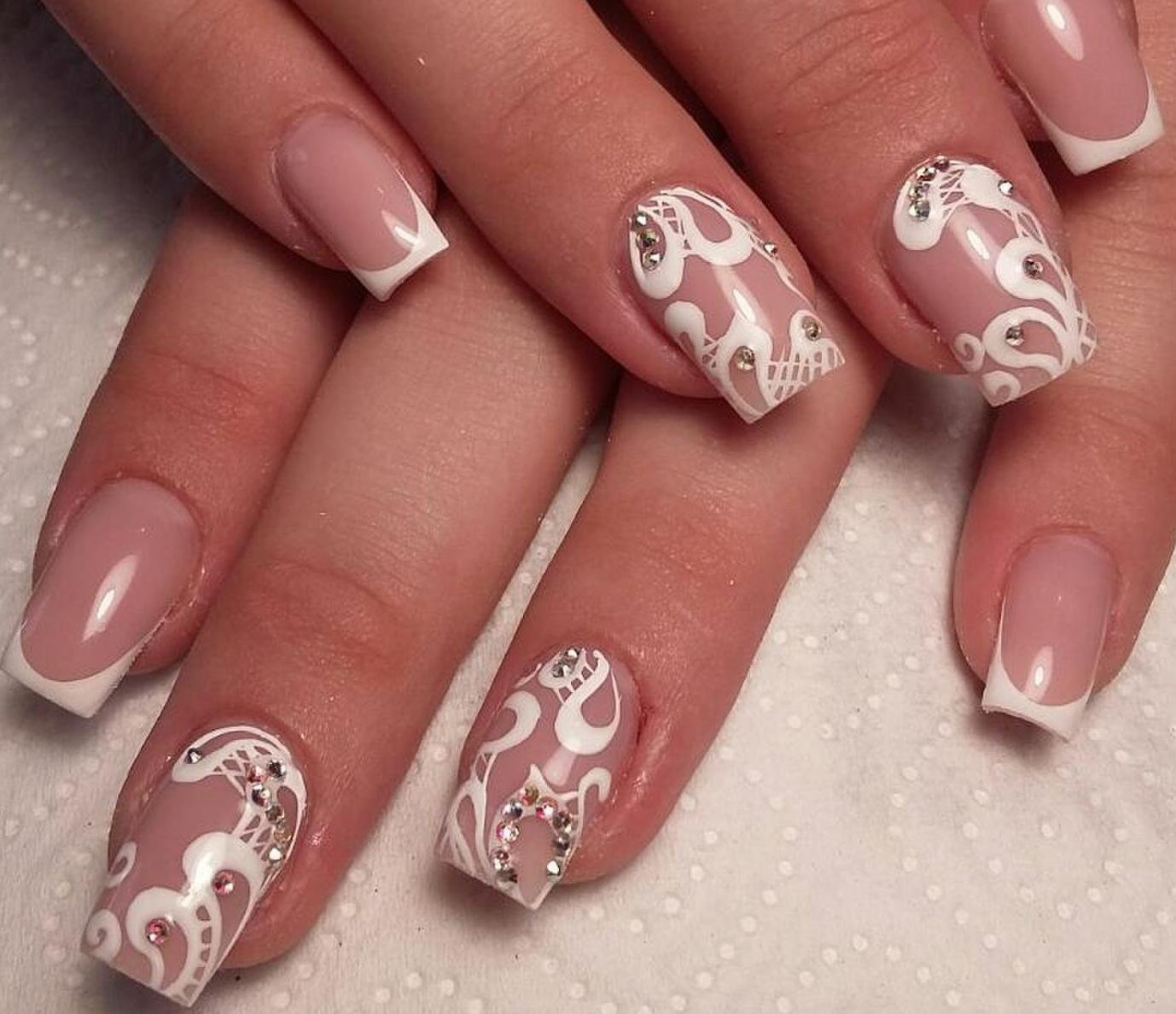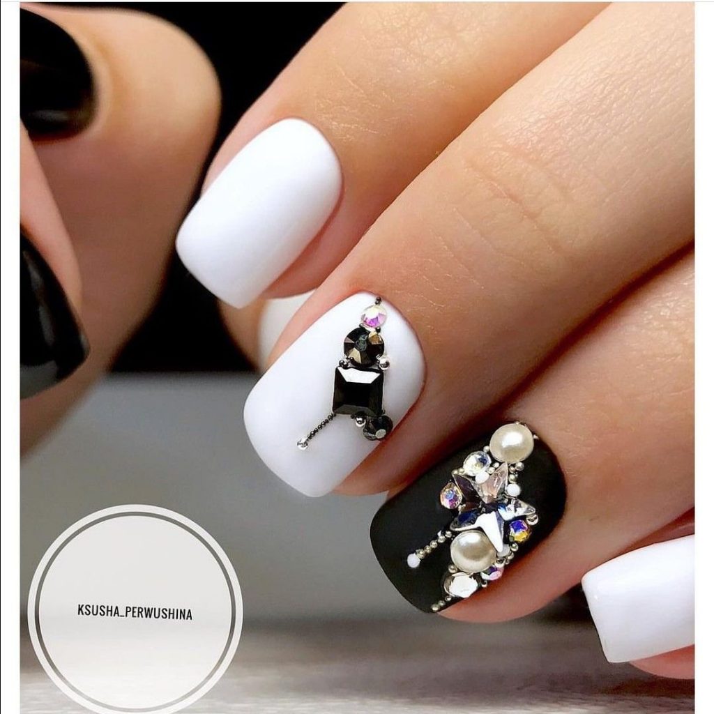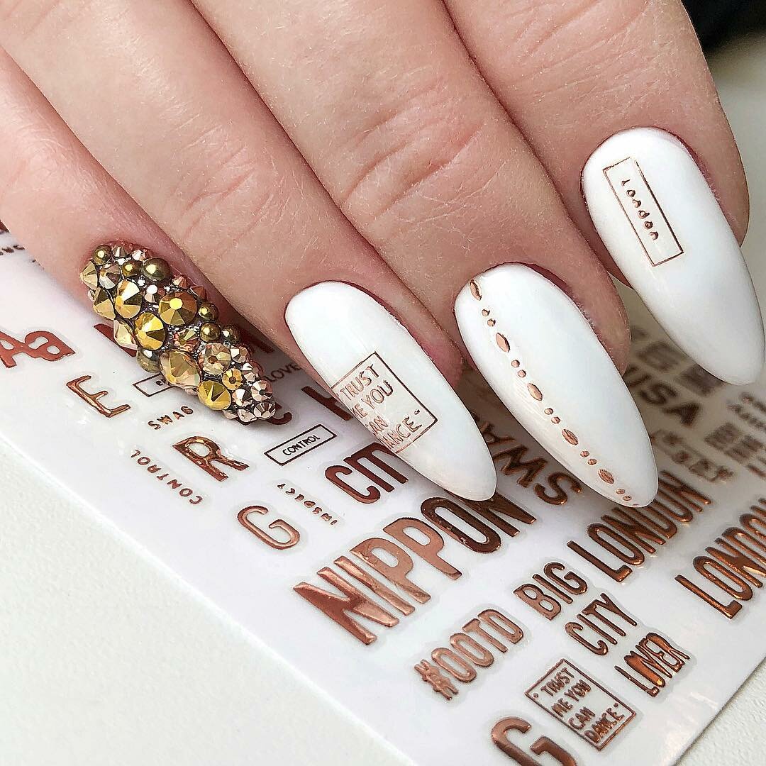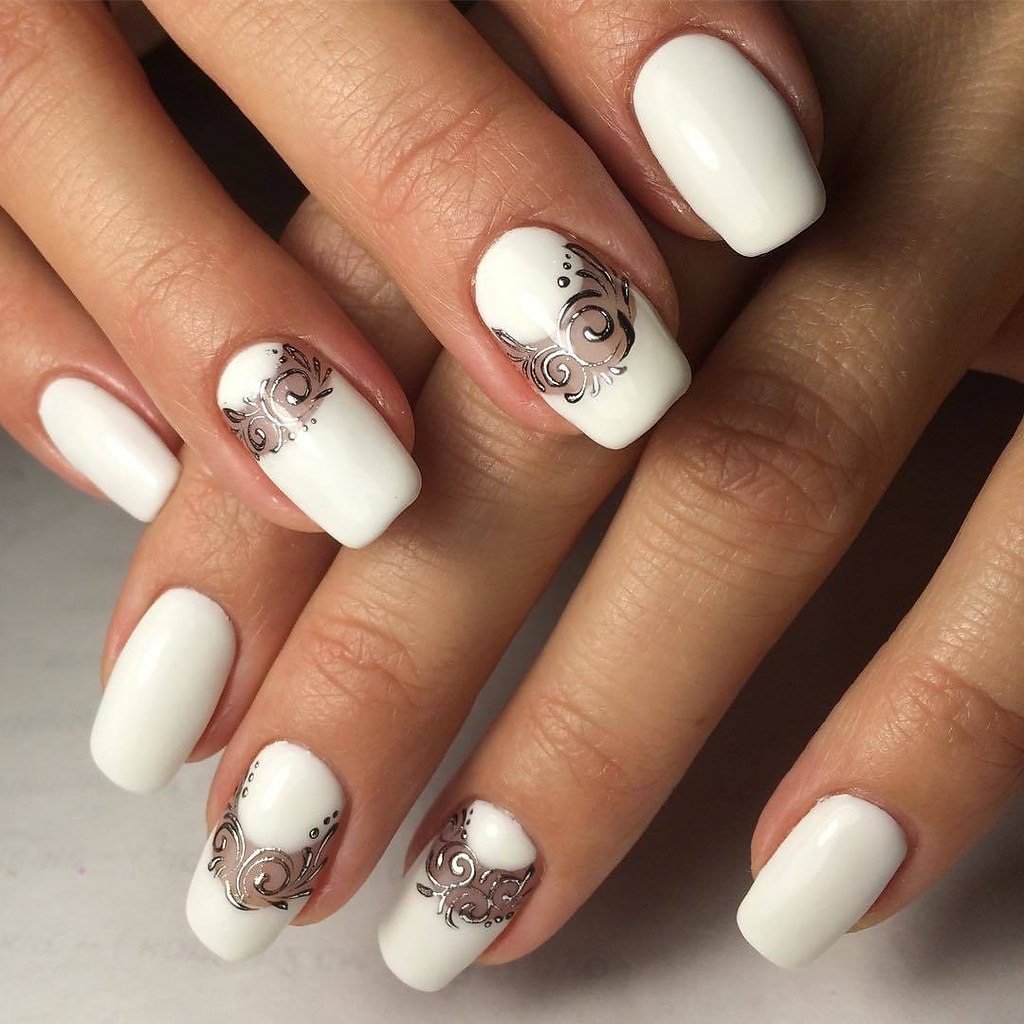 Именно декор позволяет создавать художественный нейл-арт на белой основе.