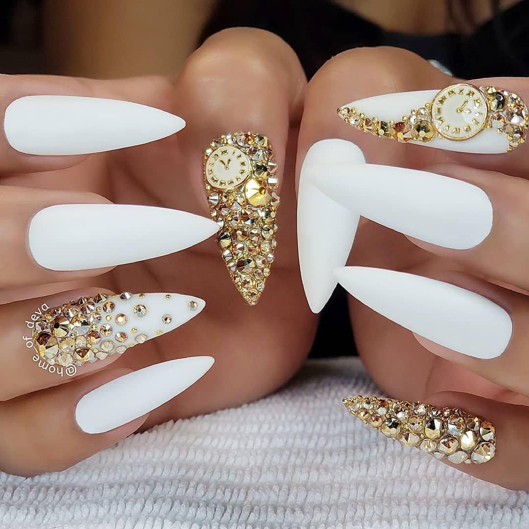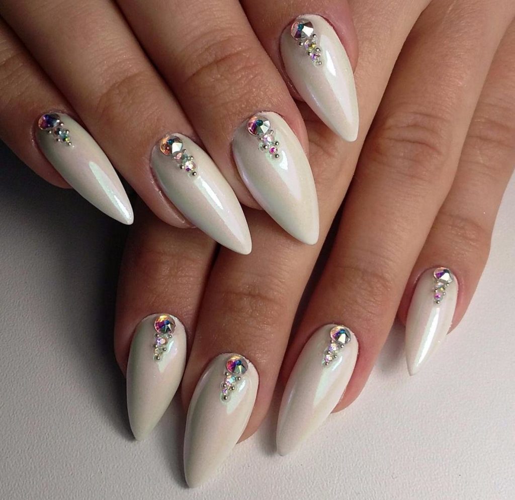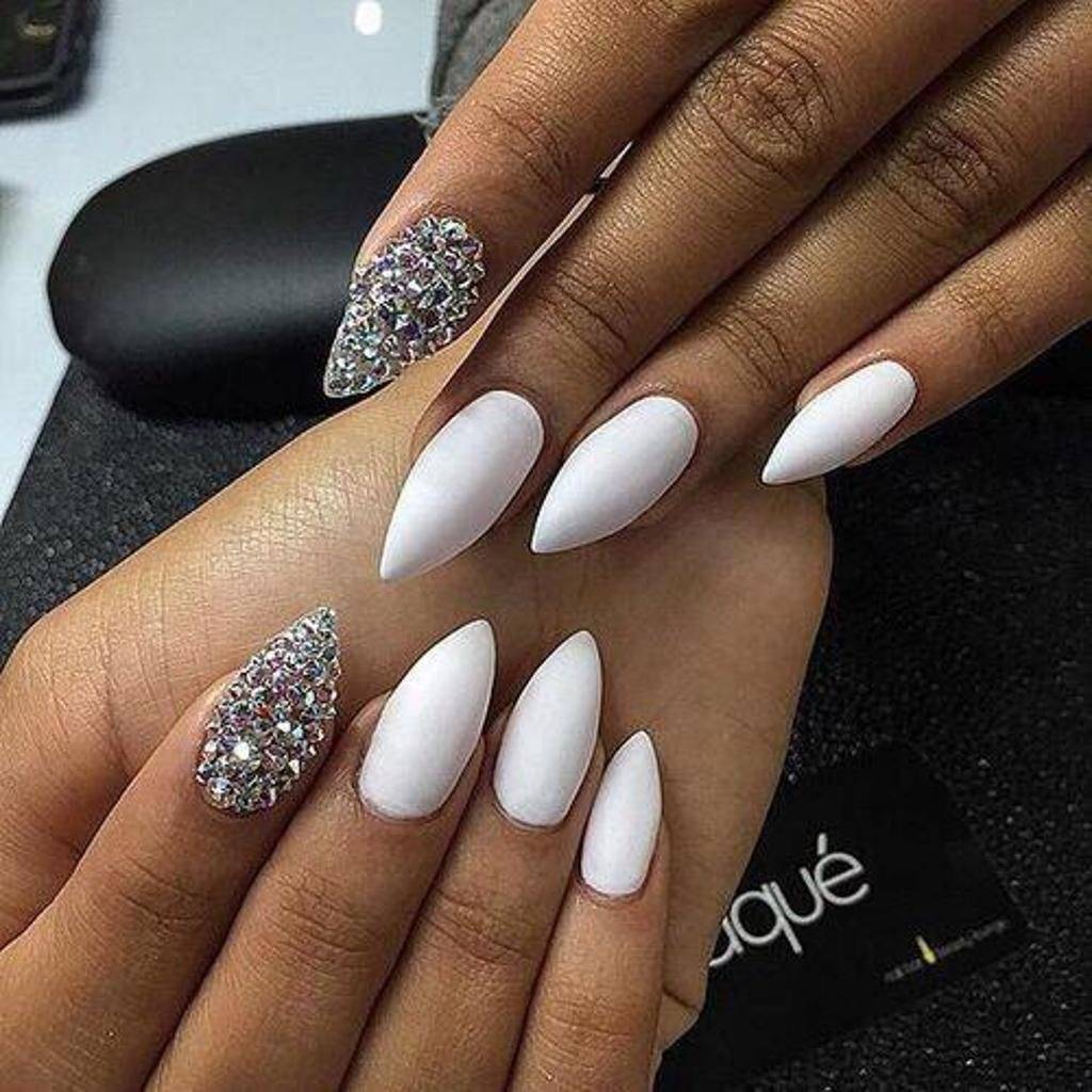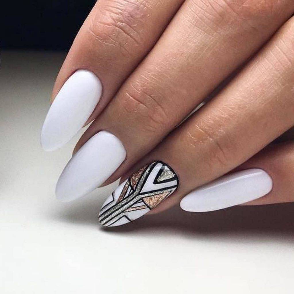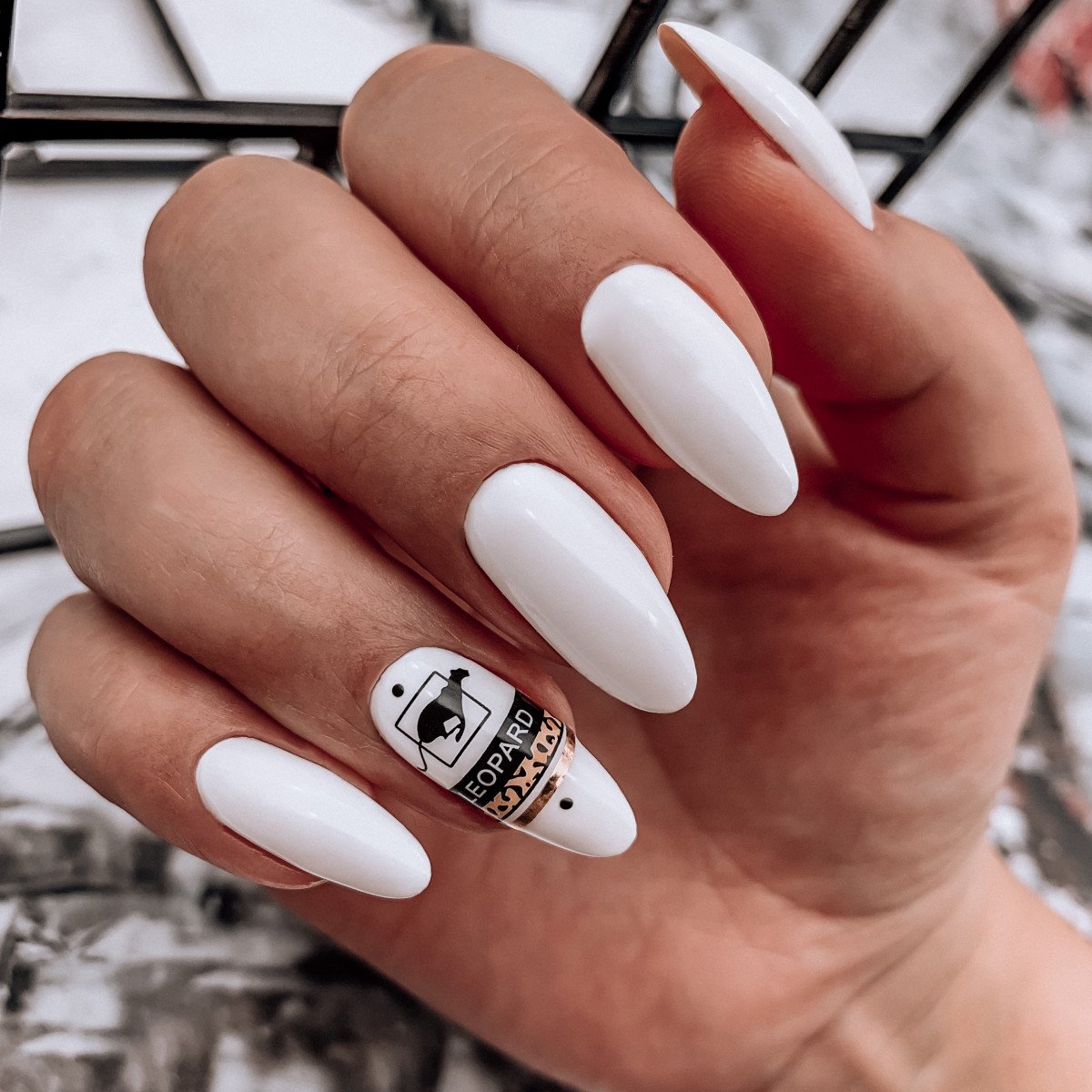 Большая длина снимает многие ограничения, которые накладываются на короткие ногти, дизайн может быть не только лаконичным, но и роскошным и гламурным. Белый фон идеально подходит для обоих способов украшения ногтей. Однако, имея чувство меры и стиля, не стоит переусердствовать и рисковать получить безвкусный белый маникюр.