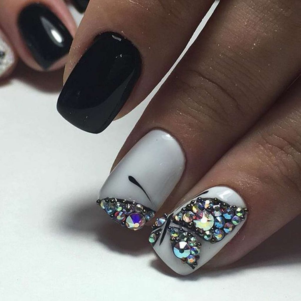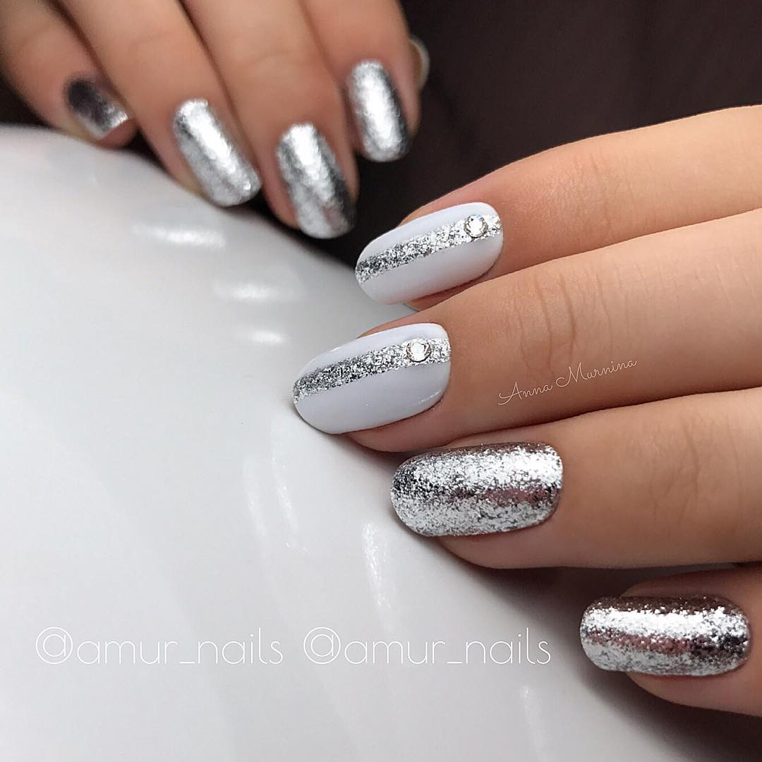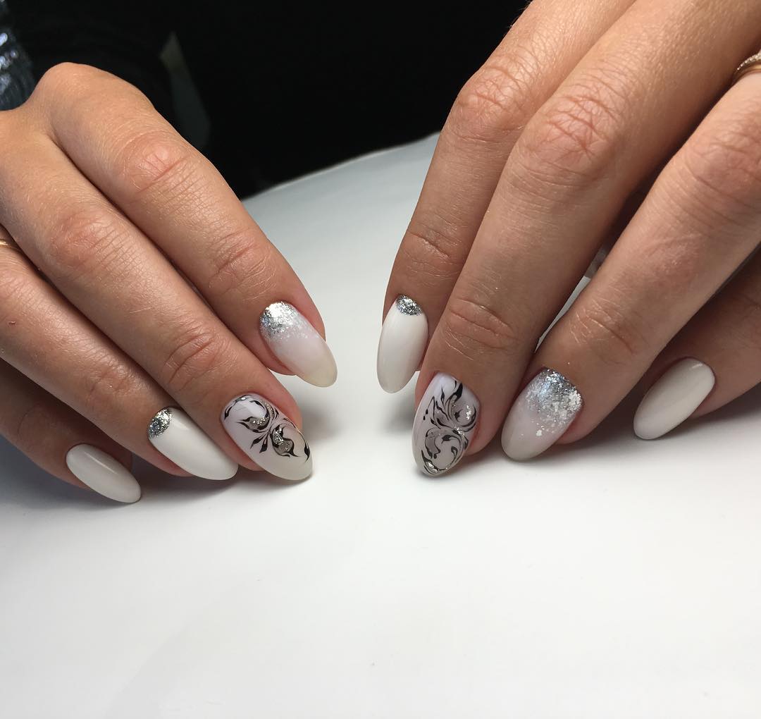 В сочетании с серебром такой вариант становится идеальным для свадьбы и других праздничных мероприятий. Если не перебарщивать со стразами, то можно выбрать этот вариант и на повседневку. Красиво выглядит френч, лунный, авангардные рисунки, втирка и роспись.