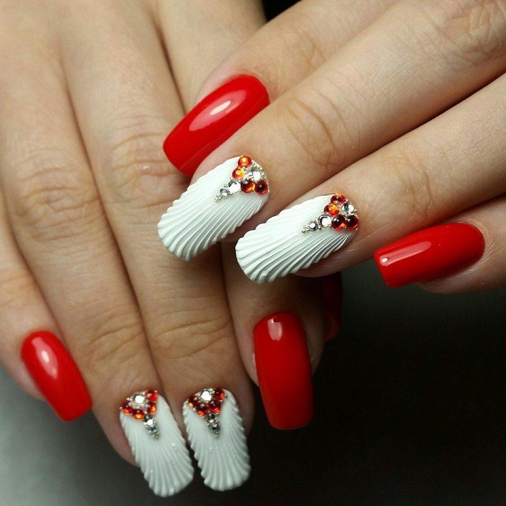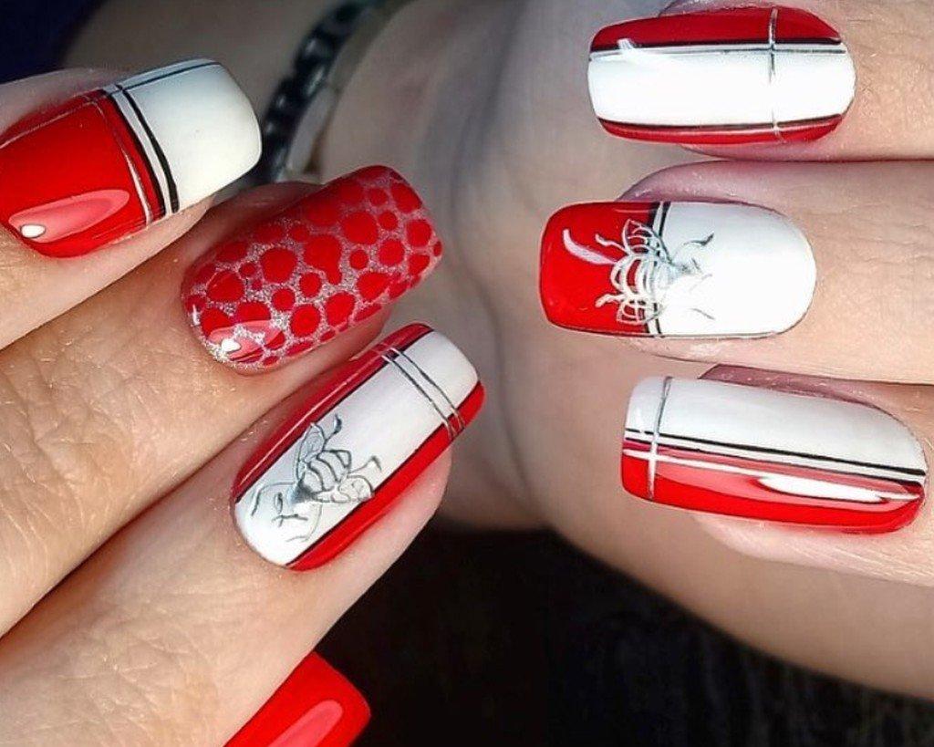 Добавление красного декора придает эффектности, дерзости, смелости. Сочетание тонов идеально для французского маникюра, создания легких узоров, добавления кружева или геометрии. Для этой цветовой гаммы используйте любимые декоративные элементы.