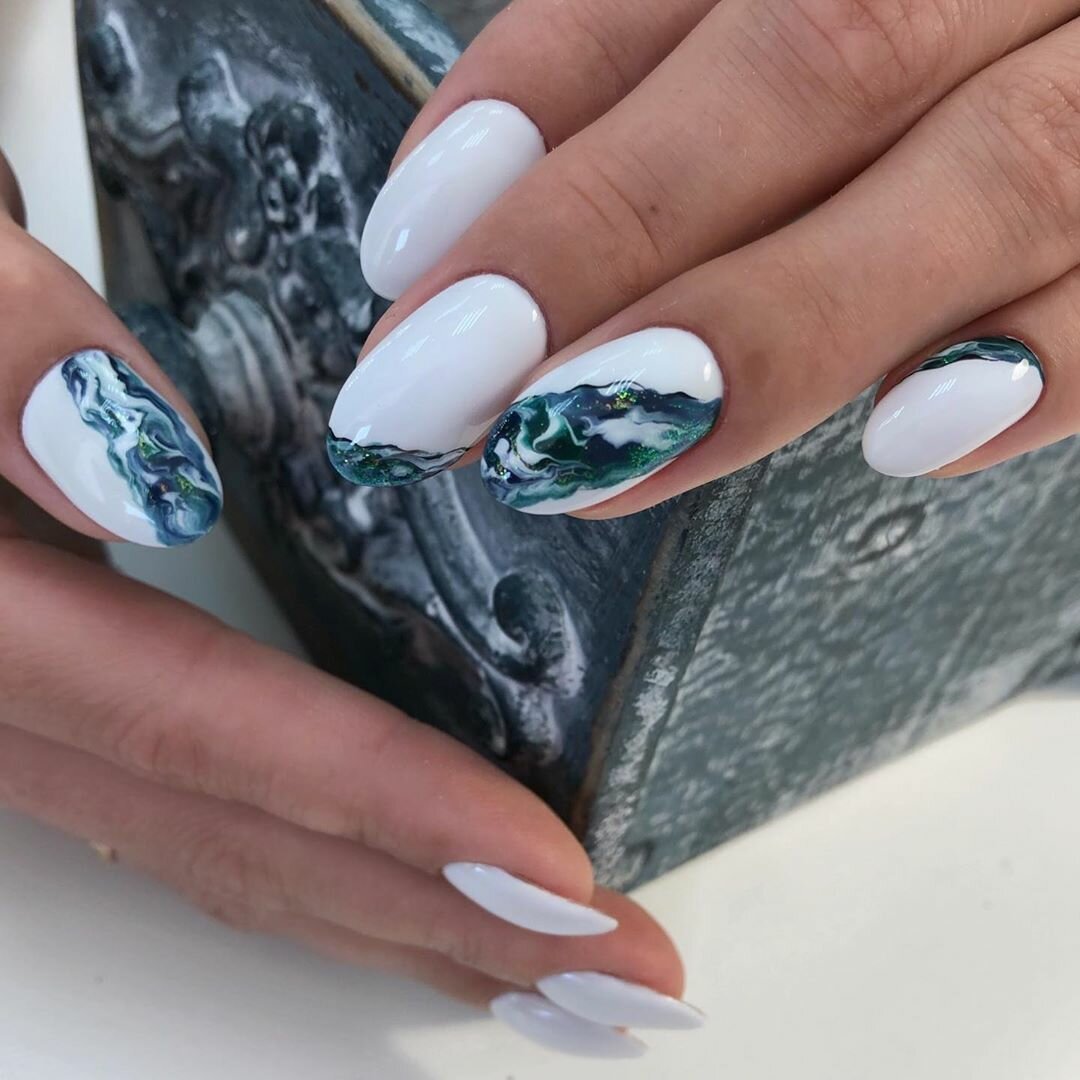 Для сезонных тем белый цвет традиционно фокусируется на зимней тематике со снегом, инеем, снежинками и кристаллами льда. Не менее интересны новые летние темы с фруктами и ягодами, цветами и морской тематикой на этом фоне. Нейтральные оттенки прекрасно передают элегантность кружевных узоров, вензелей, паутины и текстуру камней в мраморном маникюре.