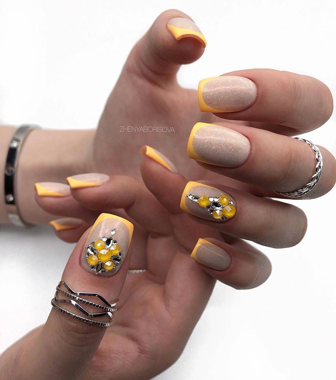 Квадратный маникюр со стразами: как расположить декор?