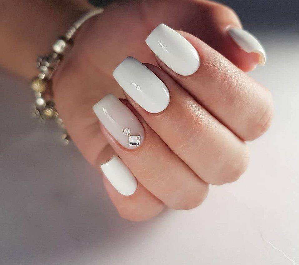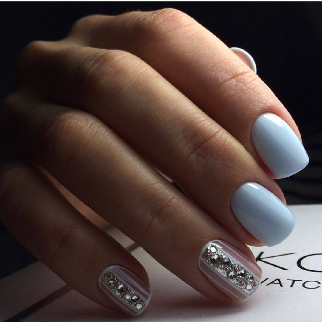 Маникюр со стразами на короткие квадратные ногти