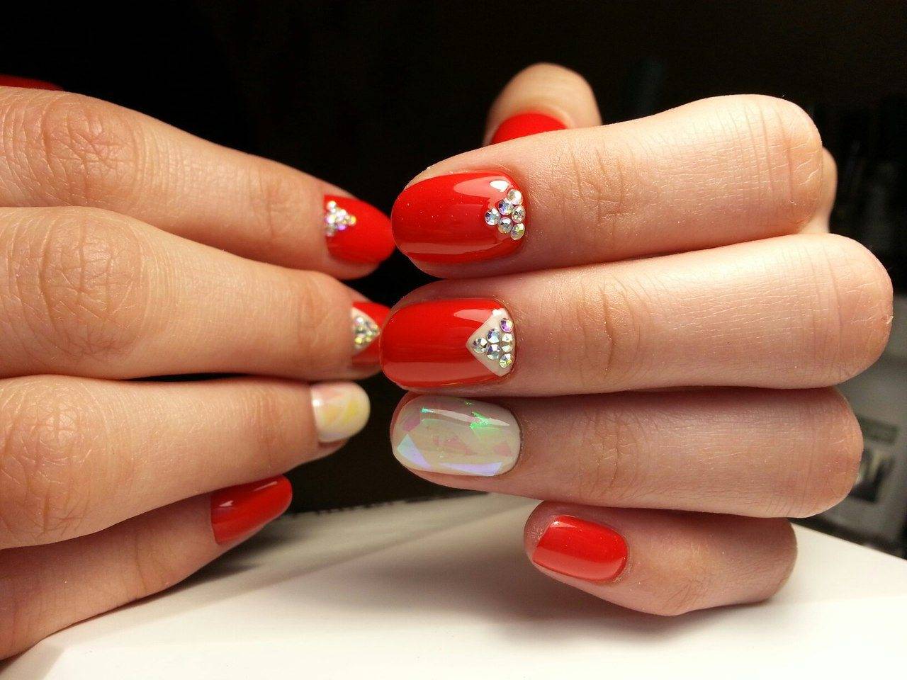 Красный маникюр с дизайном со стразами