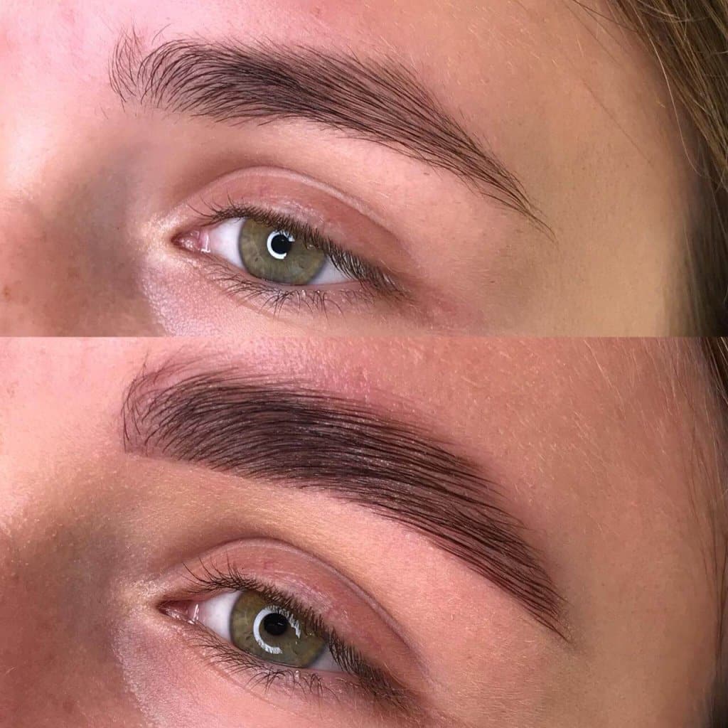 Техника хорошо сочетается с другими техниками перманентного макияжа бровей. В тандеме с порошковым покрытием достигается отличный результат — брови имеют красивую форму и цвет. При этом они остаются максимально естественными. Кажется, что тени слегка смешаны. В этом случае микроблейдинг становится незаменимым помощником для создания естественных, привлекательных и красивых бровей.