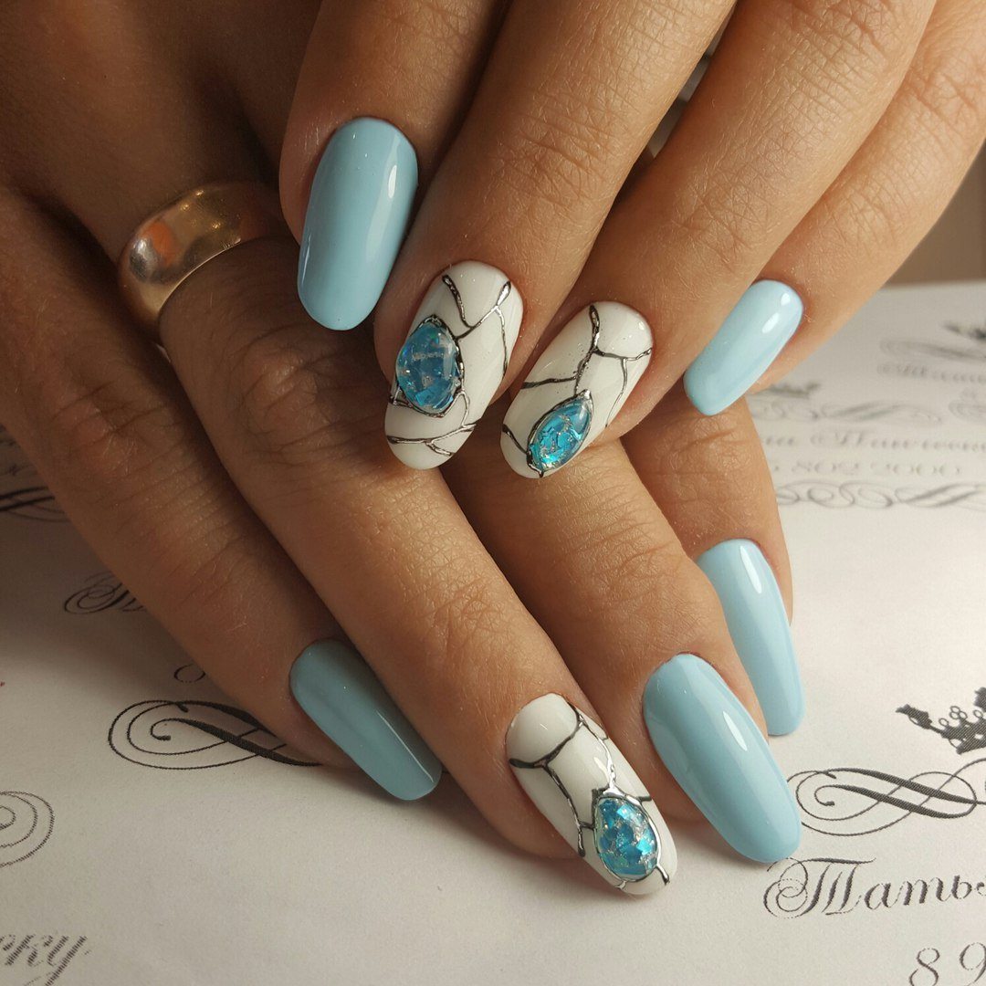 С чем можно сочетать лазурный нейл-арт?