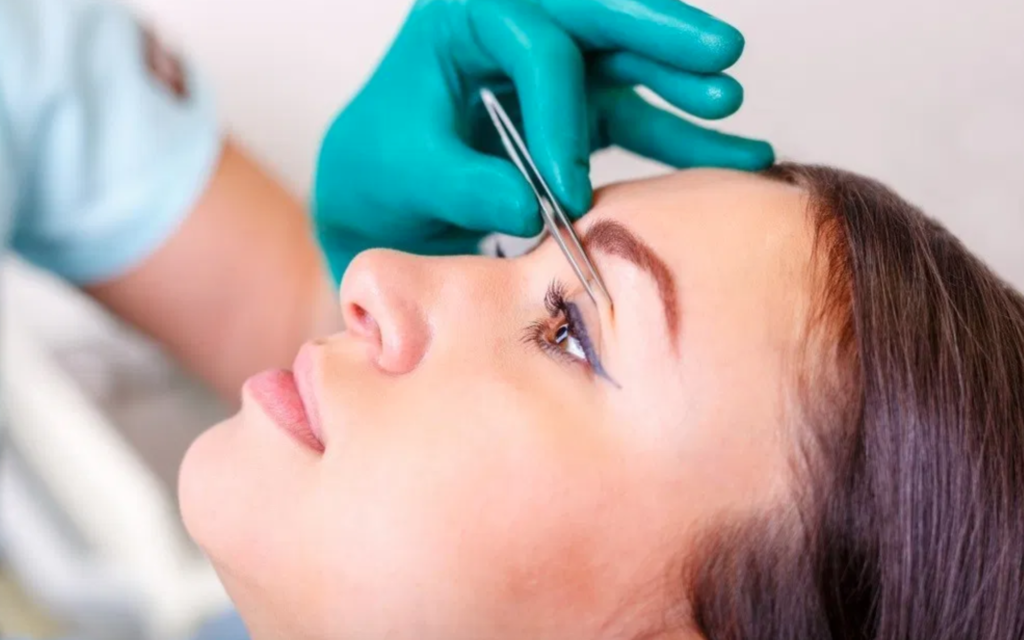 По окончании блефаропластики верхнего века, врач зашивает разрез и производит закрепление защитного пластыря.