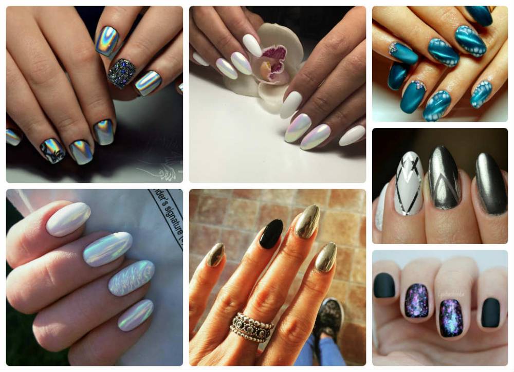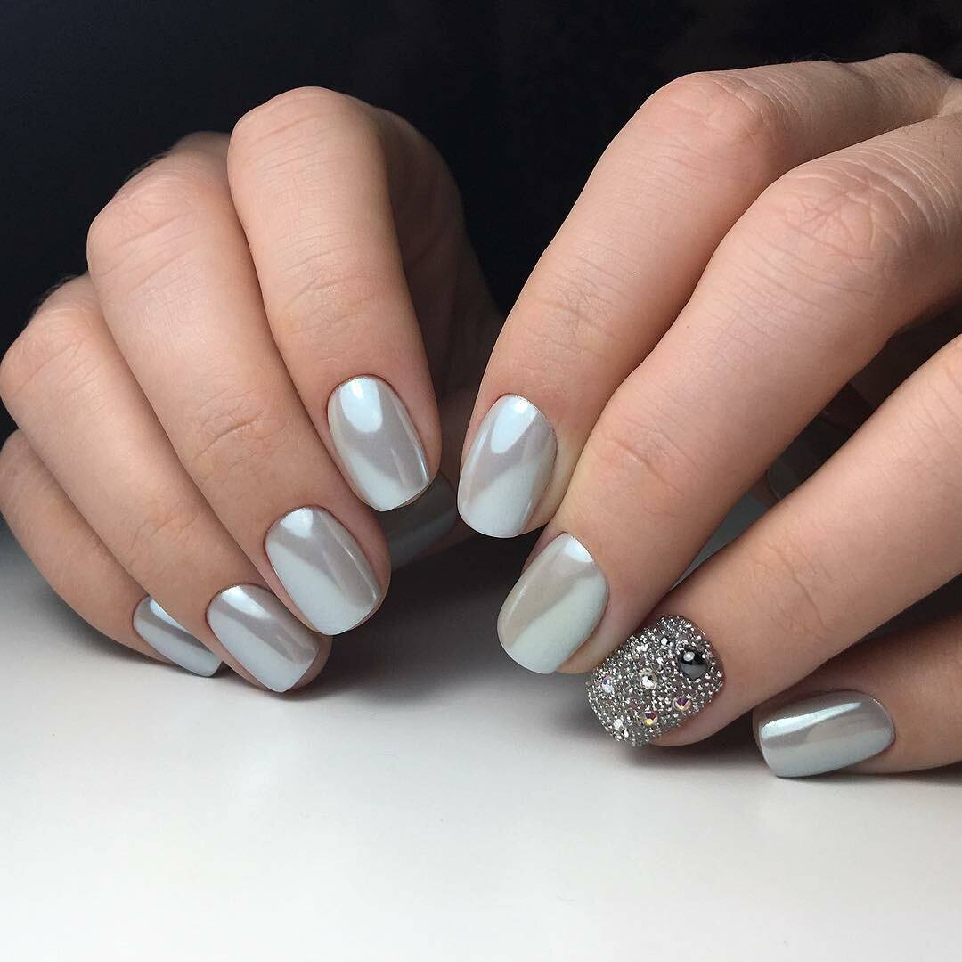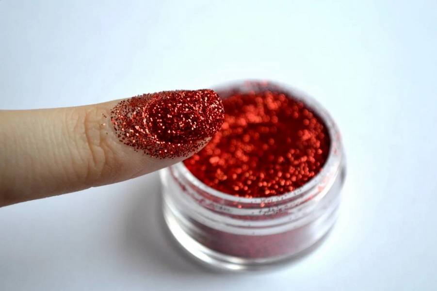 При помощи глиттер-пудры делают полноценное покрытие с очень ярким зеркальным блеском. Есть полупрозрачные, отливающие перламутром варианты, их еще называют «втиркой».