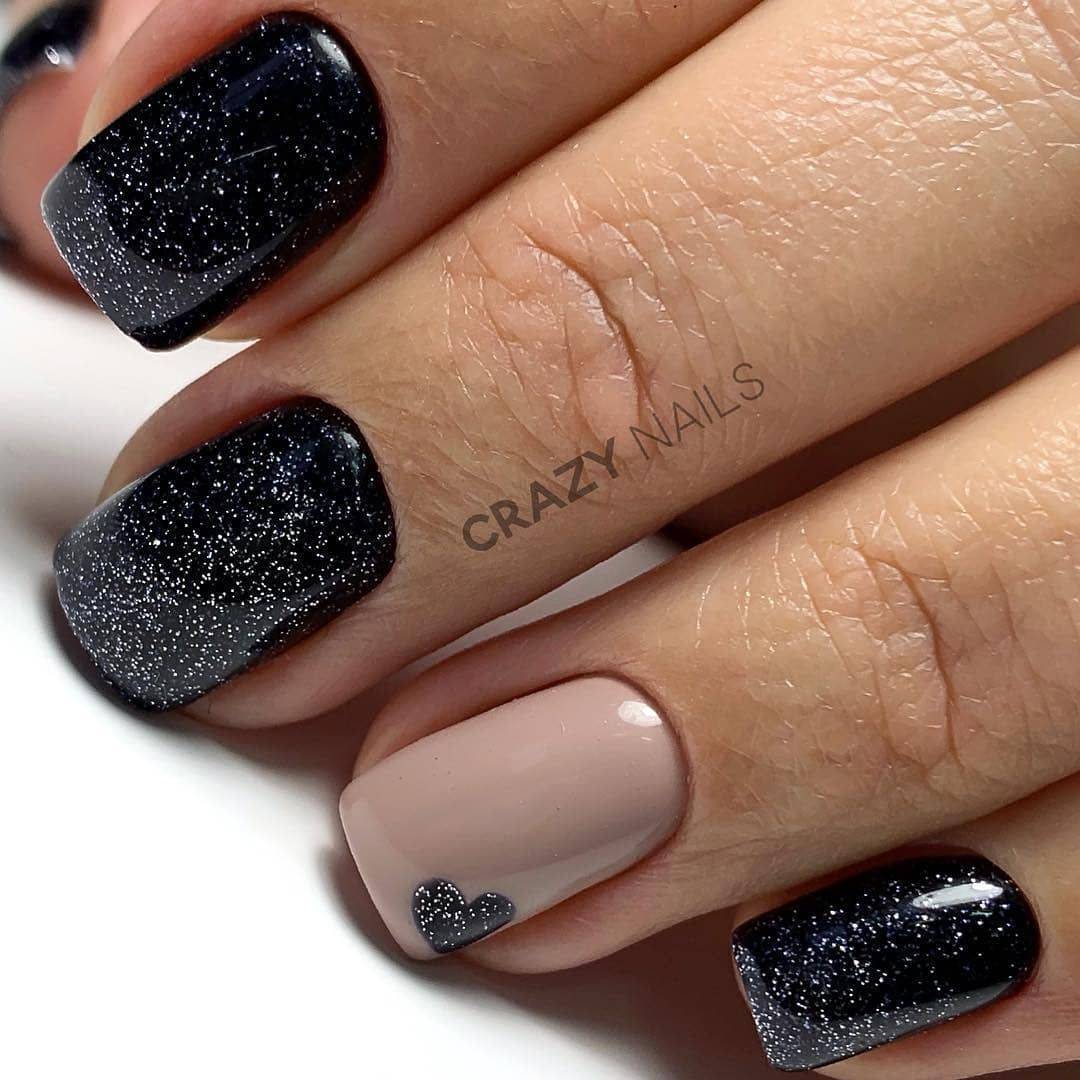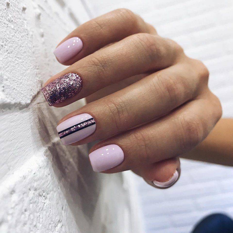 #1 Однотонный маникюр с блестками на короткие ногти