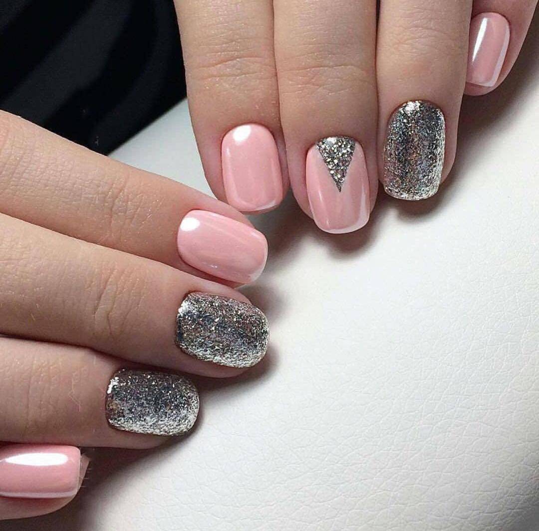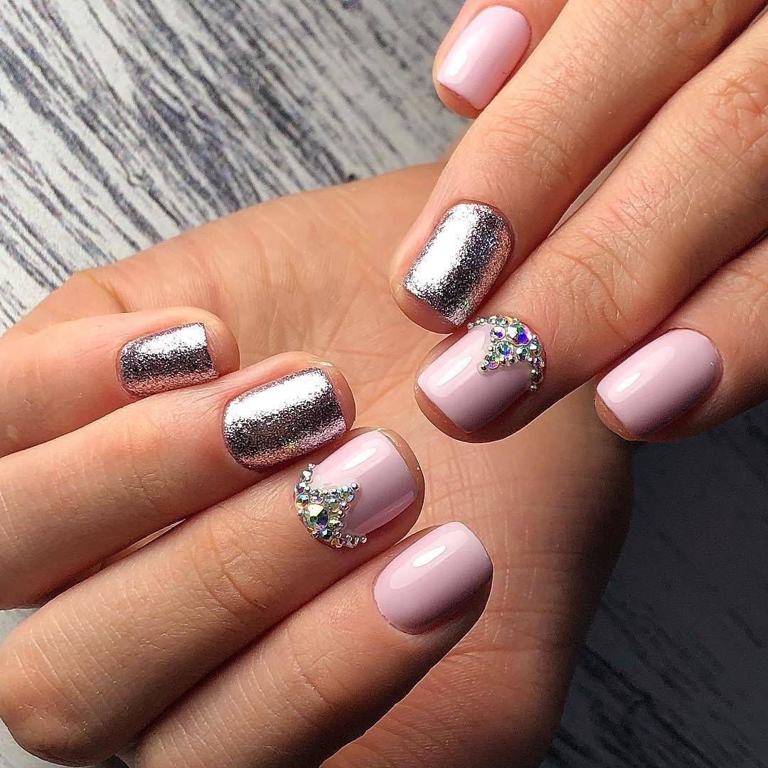 #3 Розовый маникюр с блестками на короткие ногти