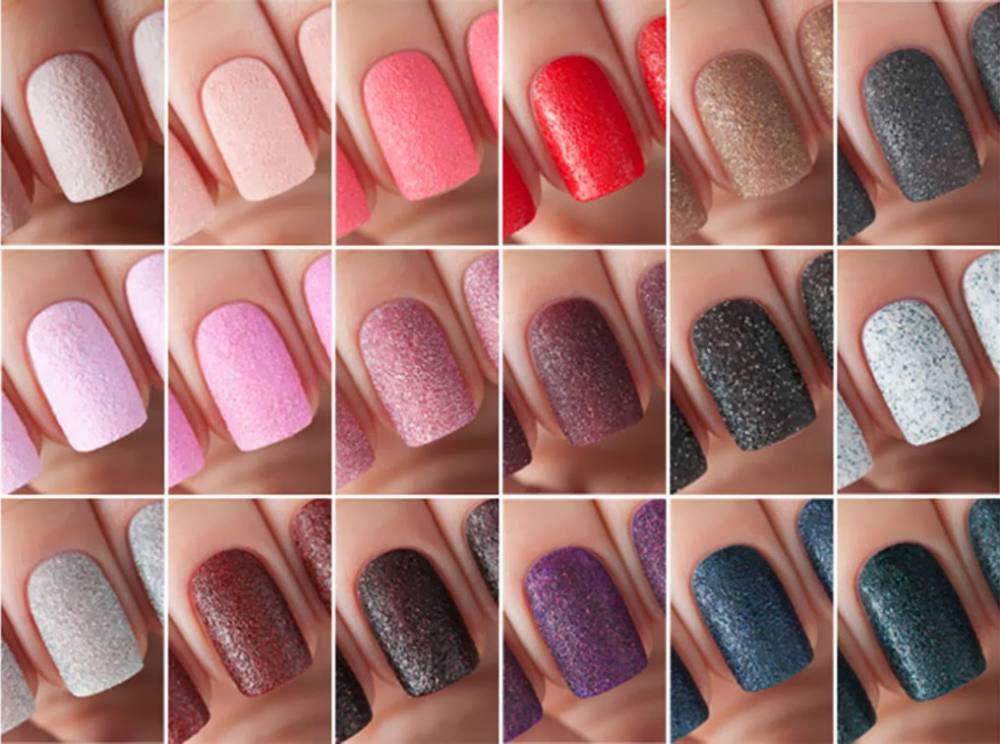 Несколько лет назад этот вид покрытия был хитом. Но его до сих пор используют, поскольку именно таким жидким составом легко работать, и он не требуется дополнительного оборудования. В продаже имеется глиттерный лак, называемый «песчаным». Достаточно приобрести бутылочку необходимого оттенка. Главное достоинство — это покрытие очень густое, его можно наносить в один слой.