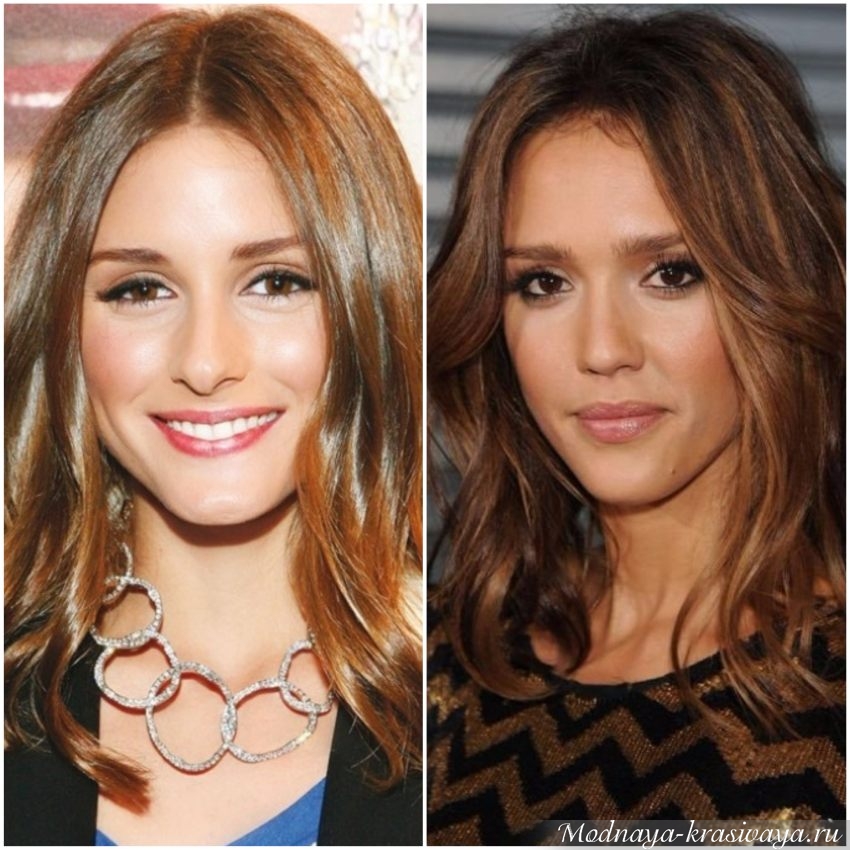 - для представительниц осени и весны: карамельный, ореховый, золотистый, бежевый, медный, шоколадный, медовый, коньячный оттенки;