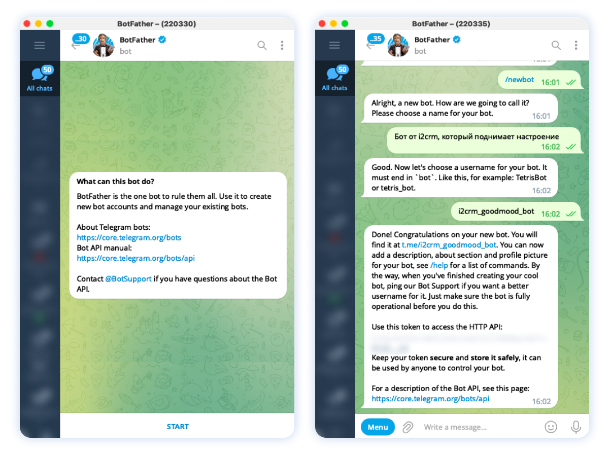Важно бережно его хранить, так как злоумышленники могут использовать токен, чтобы контролировать ваш бот.