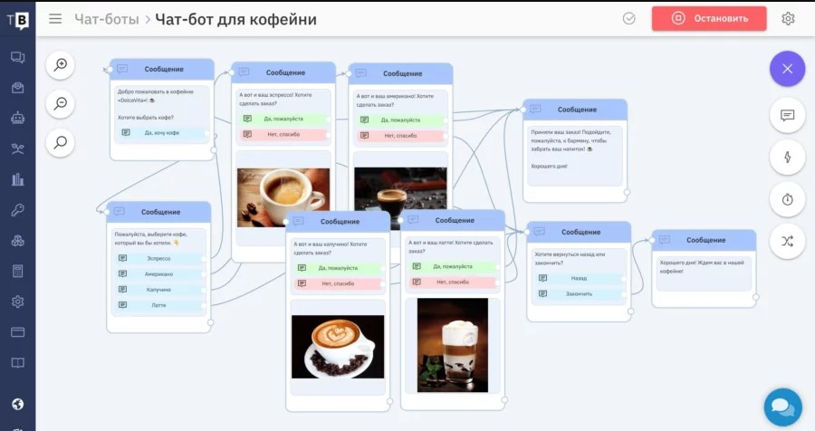 Чат-бот для ресторанного бизнеса, встречающий клиентов чашкой кофе разного типа